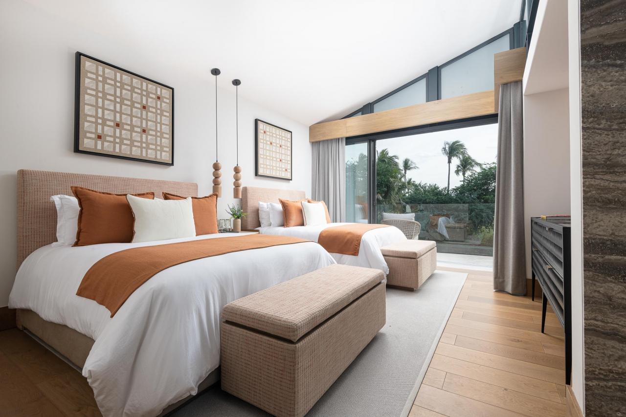 Bedroom 2 and 3: Two-bedroom suite with two queen beds and one king, ensuite bath, ground floor, partial ocean view