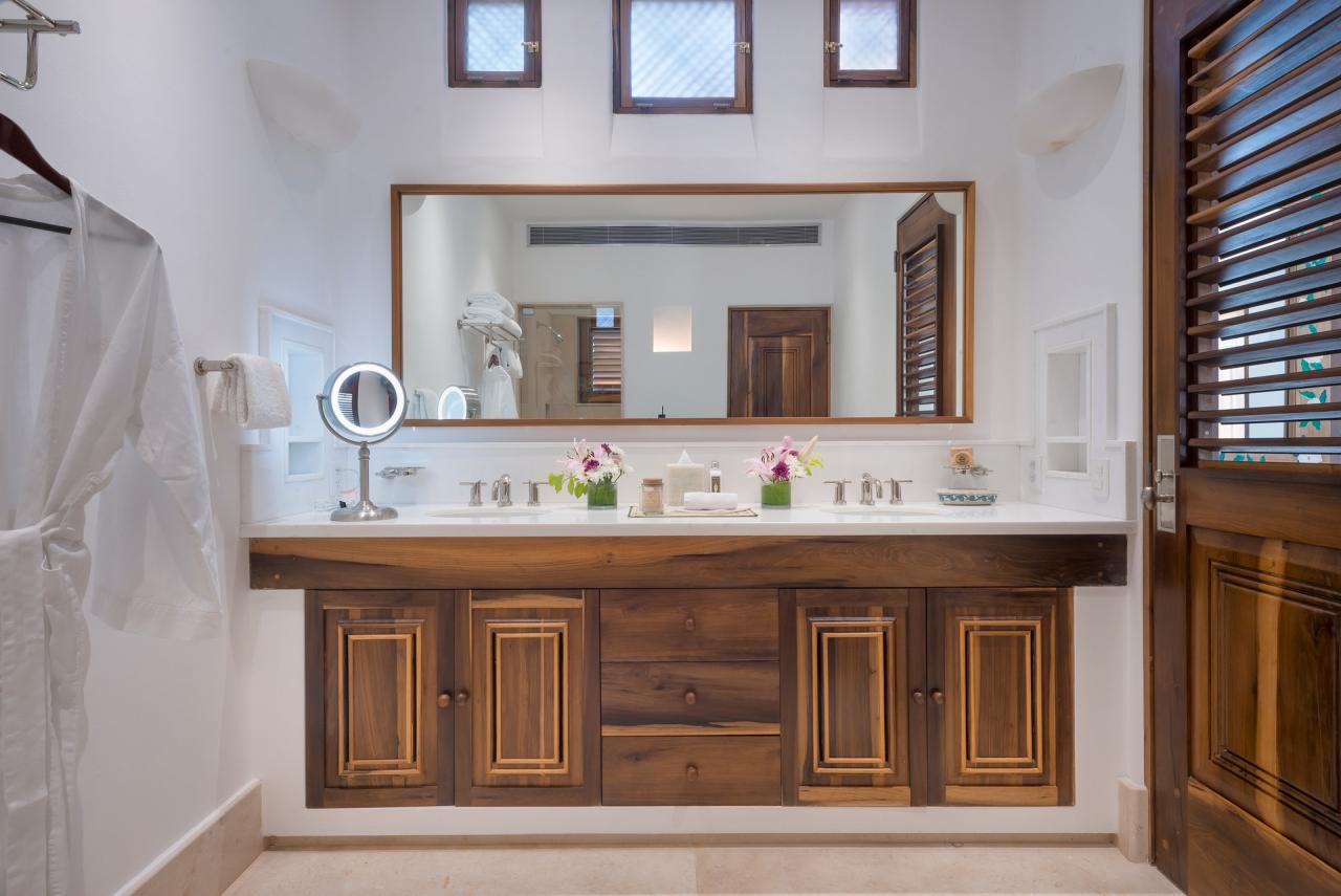 There are two master suites, each with large marble bathrooms and enough closet space to stay for a year! Both master suites open to the ocean and have private exterior sitting areas. In addition, there are two more rooms with king beds and four rooms with two queen beds each. Each suite has ocean views and a large private bath. In the center of the compound there is a yoga room which can also be used as a massage room. In addition, there is another suite with a full bath and kitchenette for your pilot or nanny. The residence is fully staffed with butler, driver, chef, housekeeping staff as well as on-site concierge. This residence tops any resort anywhere in the world!