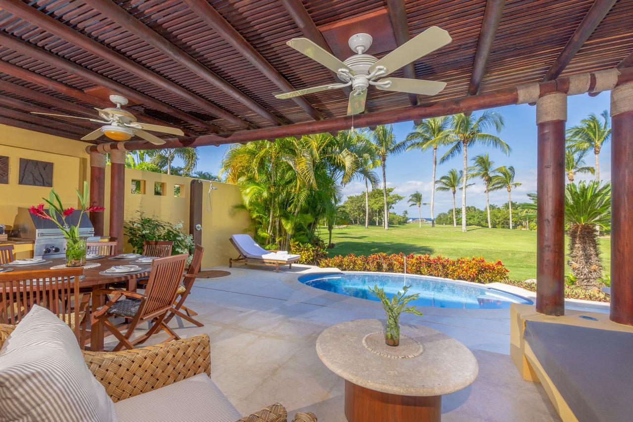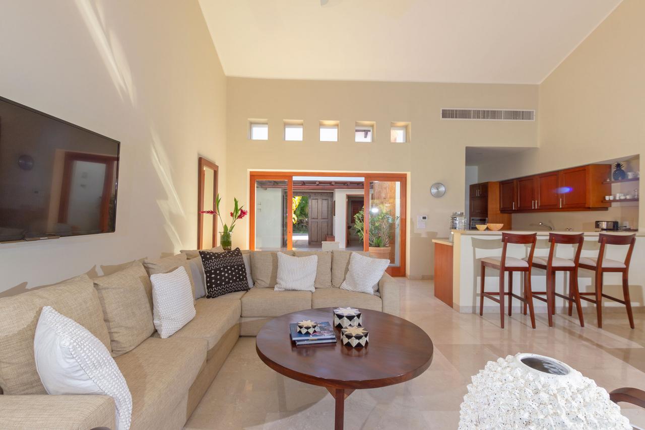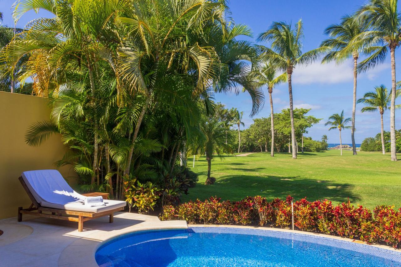 The single level makes this Punta Mita villa easily accessible to those of all ages and abilities. A living/dining room is just adjacent to the fully equipped gourmet kitchen and laundry room. Just outside, guests will find a partially covered terrace with a private plunge pool. Guests at Villa Frida will also enjoy a Premier Golf Membership and have access to a 6 seater golf cart housed within her enclosed garage (with extra space for a large luxury vehicle).