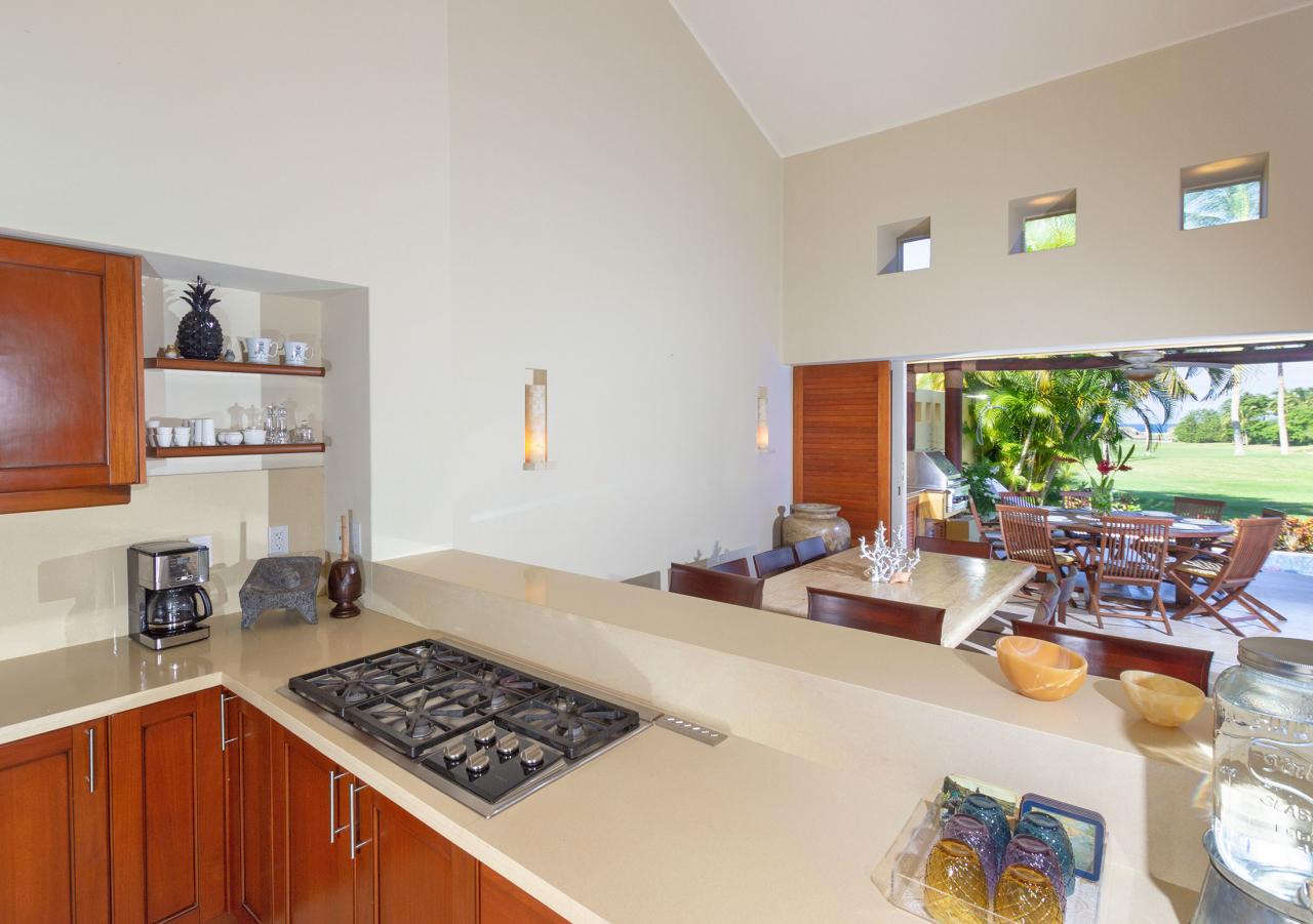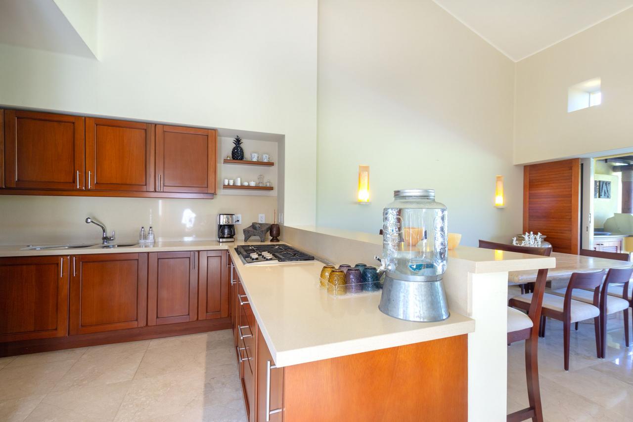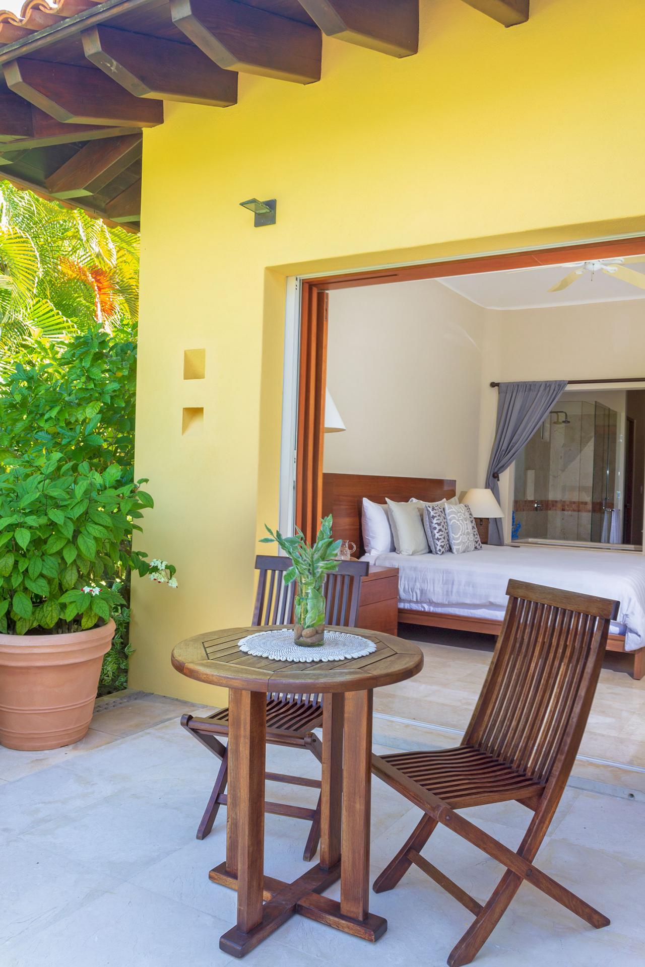 The single level makes this Punta Mita villa easily accessible to those of all ages and abilities. A living/dining room is just adjacent to the fully equipped gourmet kitchen and laundry room. Just outside, guests will find a partially covered terrace with a private plunge pool. Guests at Villa Frida will also enjoy a Premier Golf Membership and have access to a 6 seater golf cart housed within her enclosed garage (with extra space for a large luxury vehicle).