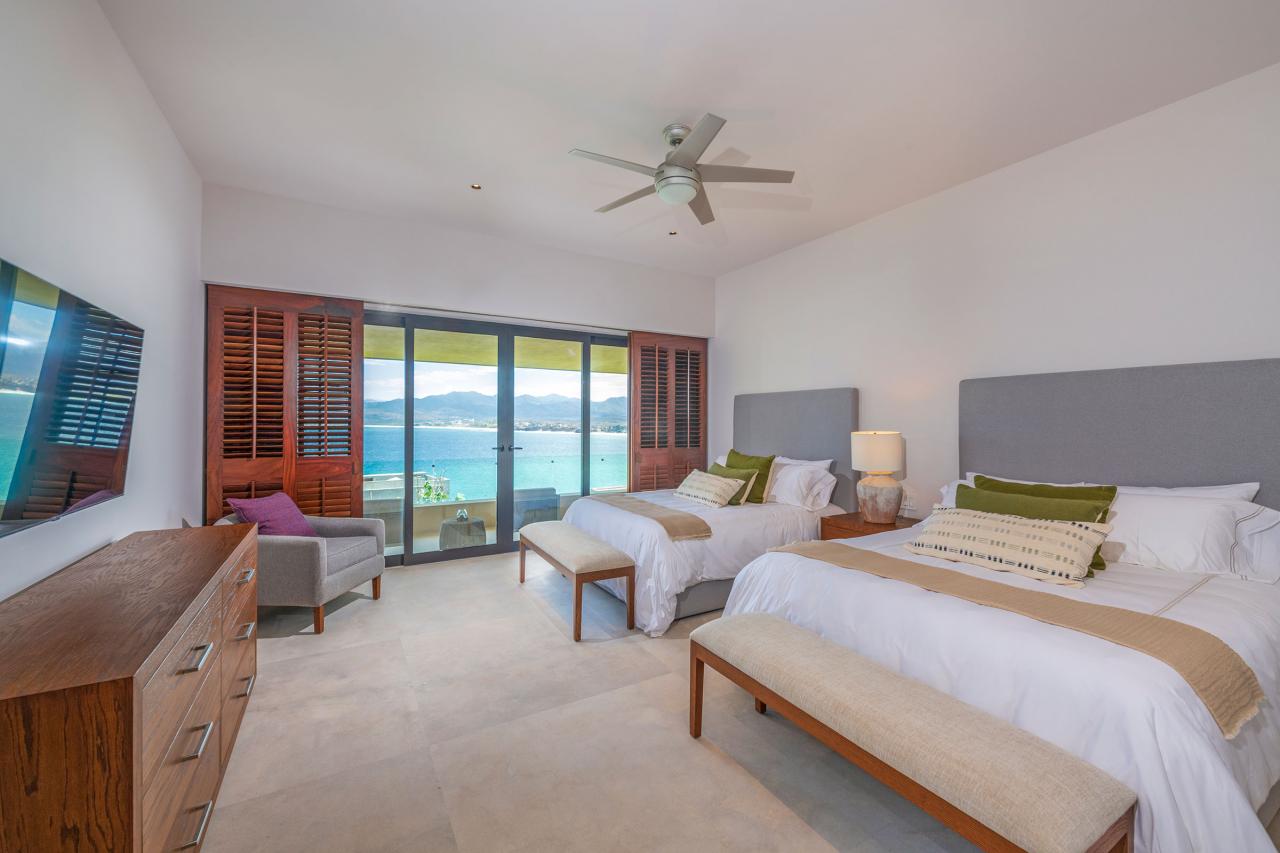 Bedroom 3: This room is equipped with two queen-sized beds, a TV, a terrace, an ocean view, and an ensuite bathroom.