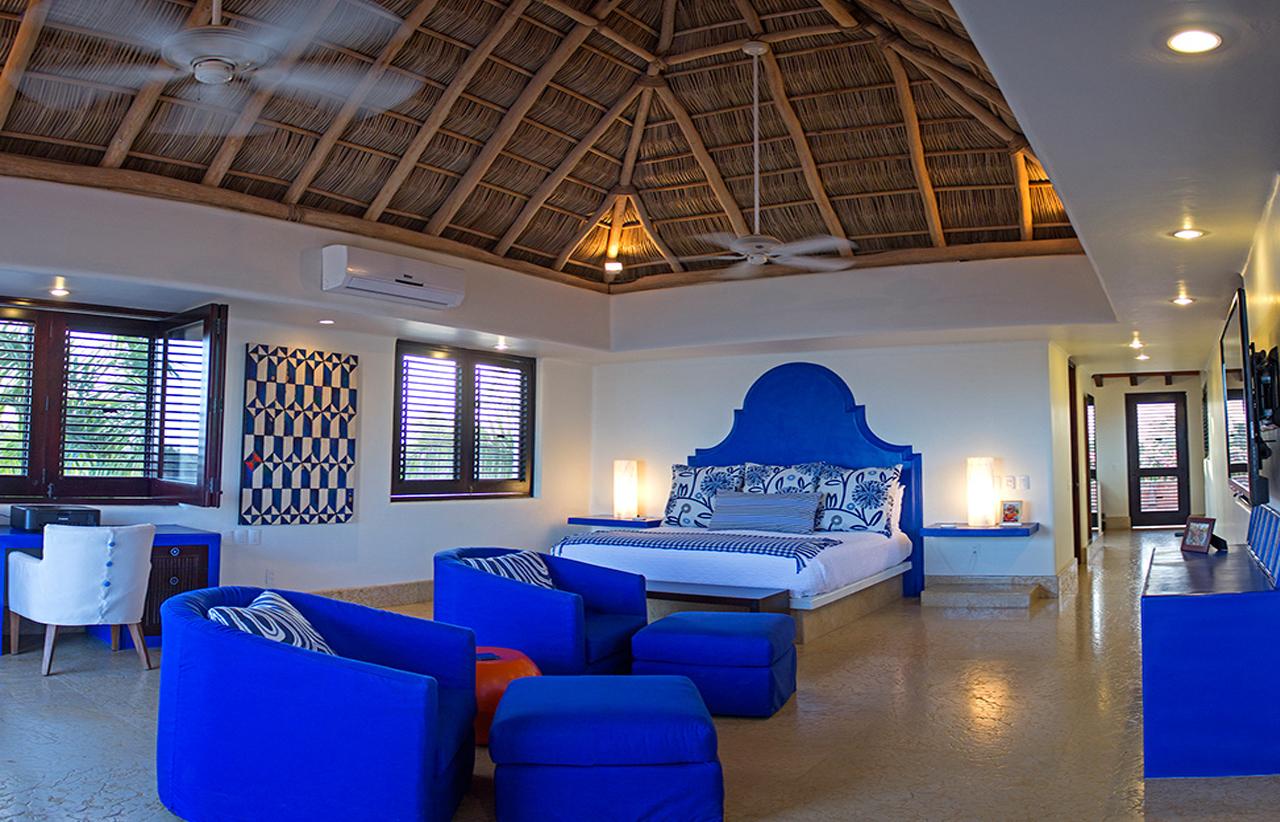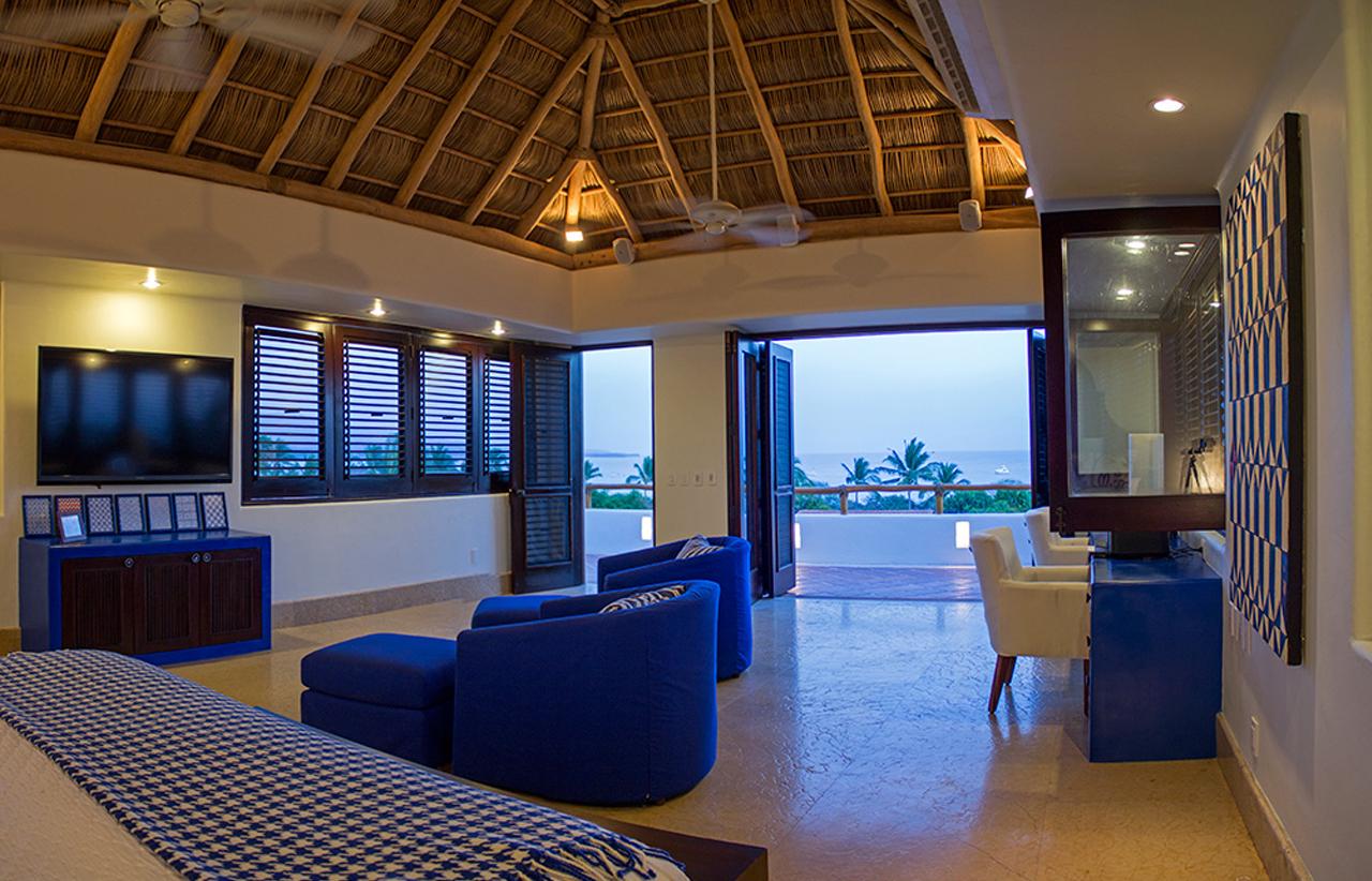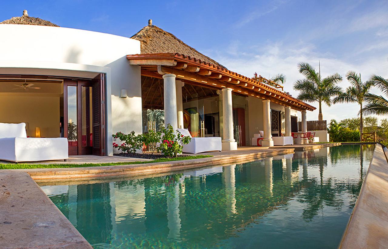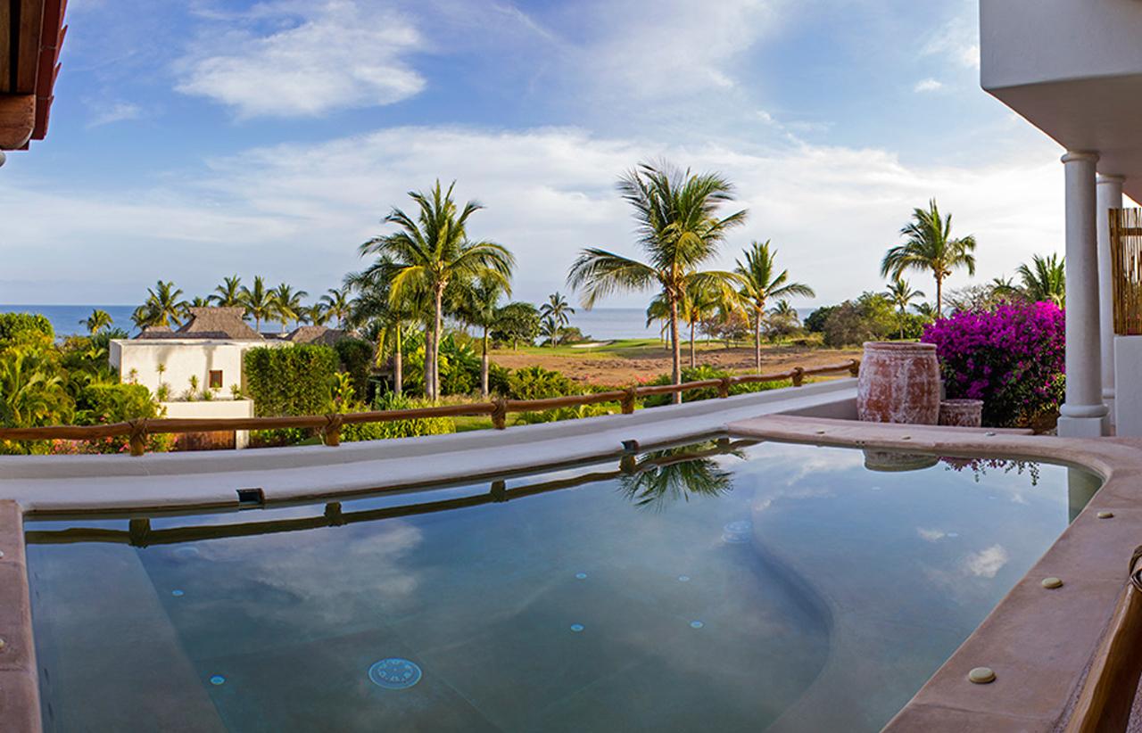 Villa Marmol is an incredible 3 story property located within the Punta Mita resort inside Lagos del Mar, featuring amazing golf course and ocean views. The traditional Mexican Hacienda architectonic style mix with modern & contemporary details are found in every single area of this wonderful Punta Mita villa rental. Every area in Villa Marmol is connected to the open common area, featuring a relaxing water fountain right in the middle of the property. Unique and tranquil spaces just for you to enjoy. Color contrast is found in each of the five rooms, wood, marble & stone are some elements complementing every single area of the villa thought specifically for your relaxation.