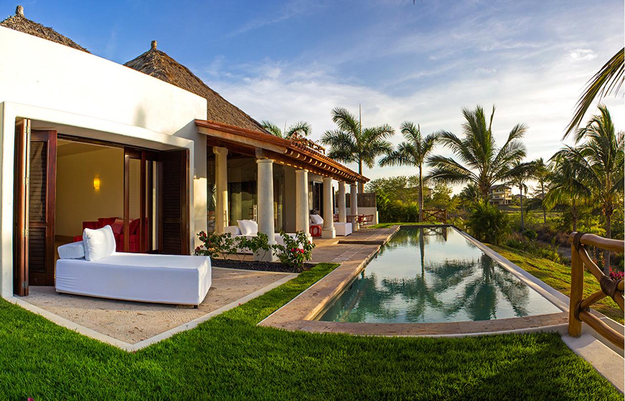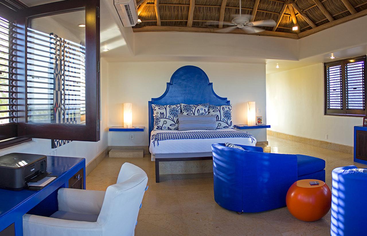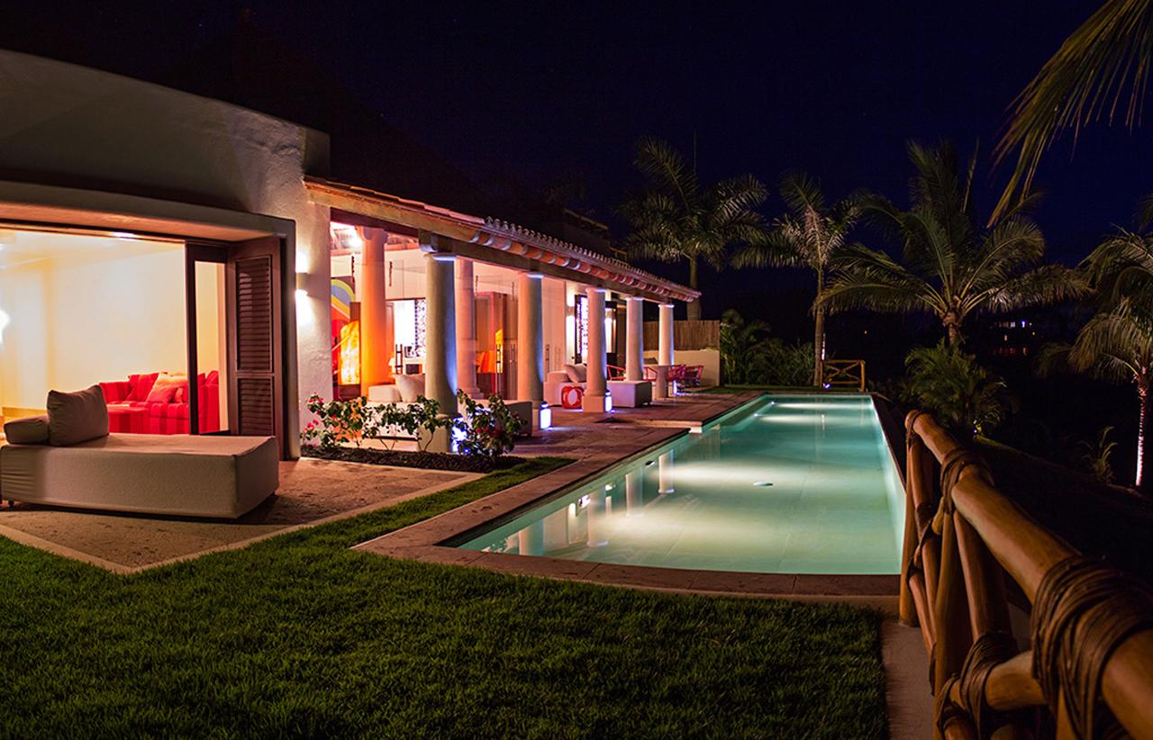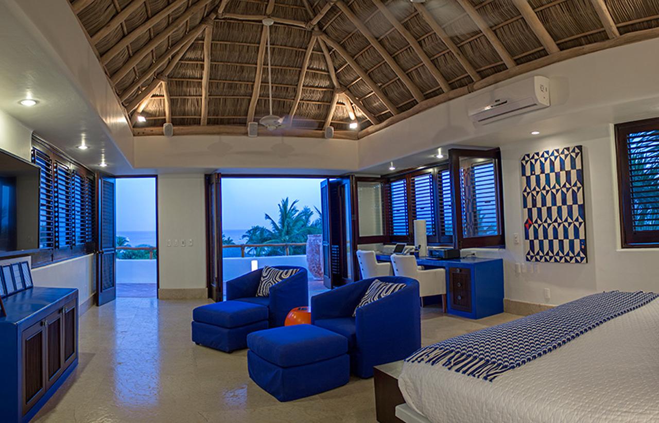 Villa Marmol is an incredible 3 story property located within the Punta Mita resort inside Lagos del Mar, featuring amazing golf course and ocean views. The traditional Mexican Hacienda architectonic style mix with modern & contemporary details are found in every single area of this wonderful Punta Mita villa rental. Every area in Villa Marmol is connected to the open common area, featuring a relaxing water fountain right in the middle of the property. Unique and tranquil spaces just for you to enjoy. Color contrast is found in each of the five rooms, wood, marble & stone are some elements complementing every single area of the villa thought specifically for your relaxation.