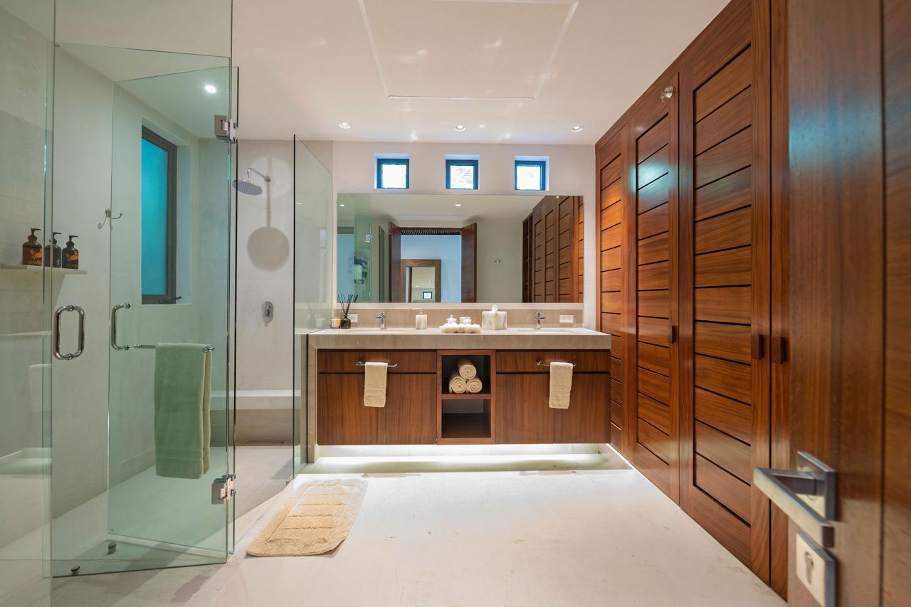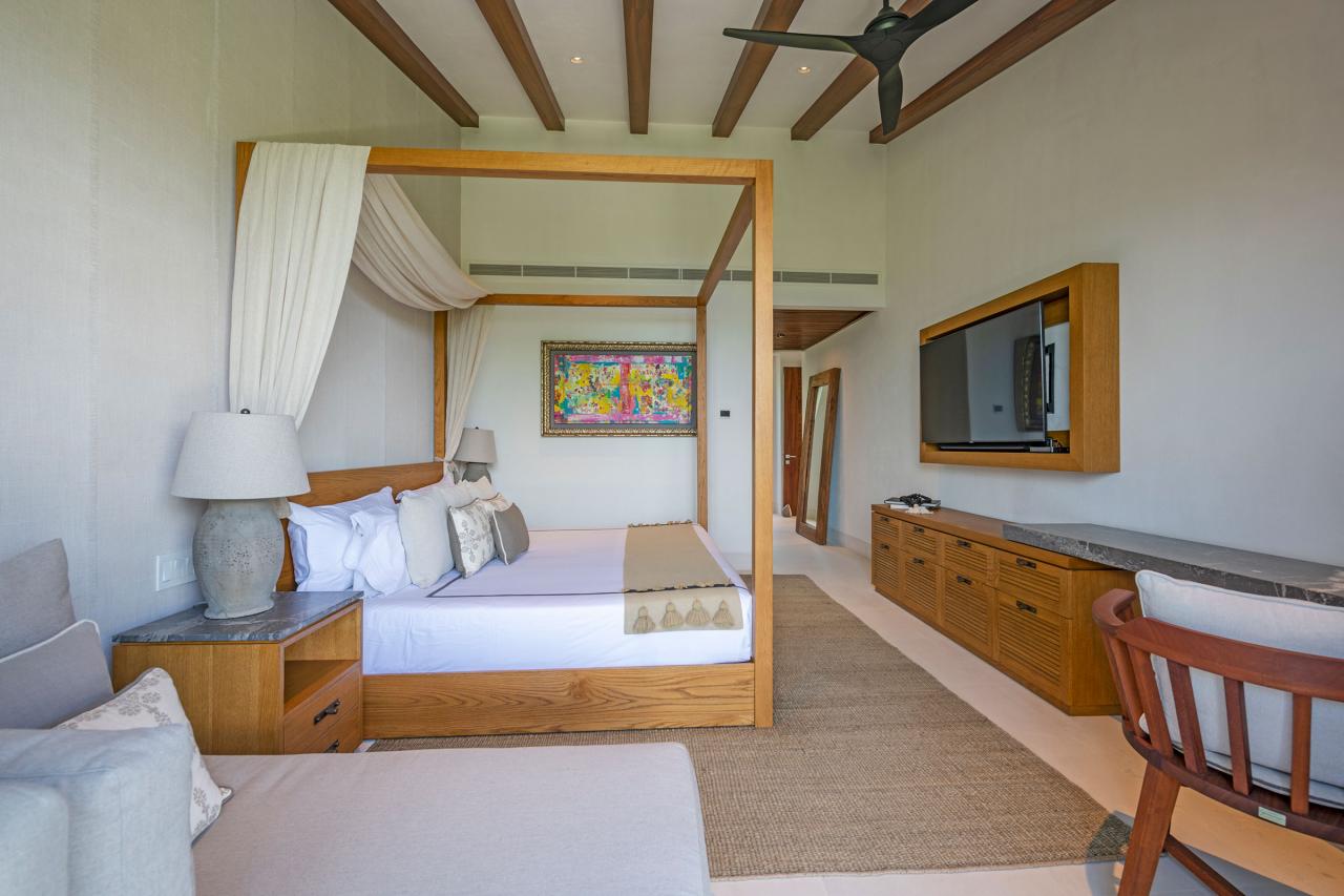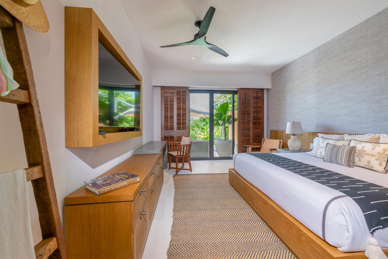 Primary Bedroom: This room is equipped with a king-sized bed, a plasma TV, and an ensuite bathroom with air conditioning.
