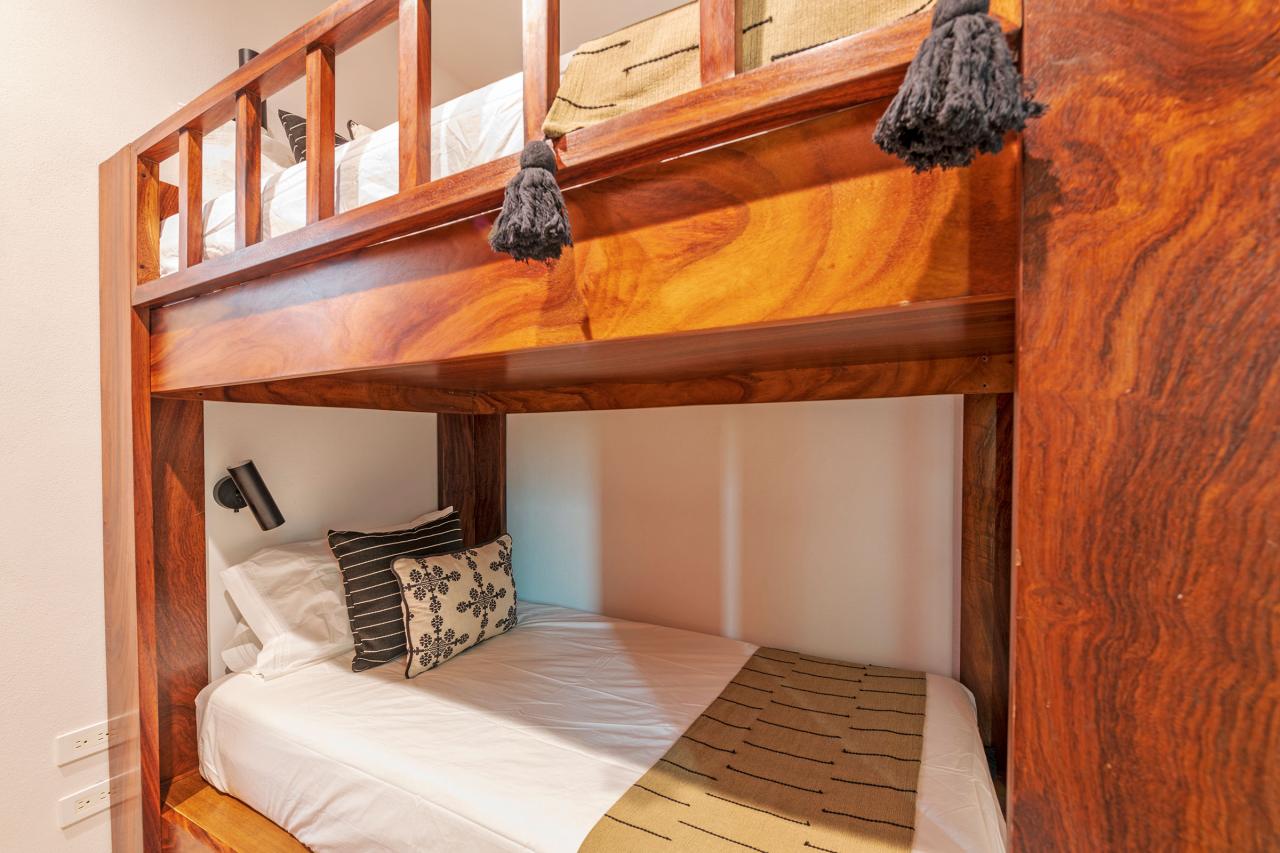 Bedroom 4: This room is equipped with a bunk bed (two single-sized beds) and an ensuite bathroom with air conditioning.