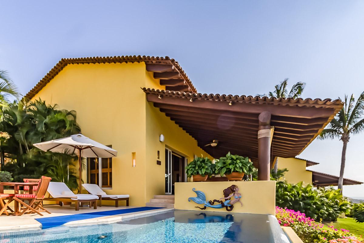 This single story, Private Villa boasts an expansive view of the Pacific Ocean and the offshore Islands and is a five minute walk to the beach. The lush green landscaping of the neighboring Four Seasons Resort offers an idyllic hillside retreat. Elegantly decorated in modern Mexican décor. At Villa Sirena, you'll enjoy shared access to the top-shelf amenities of the Four Seasons, including restaurants, two world-class golf courses, a fitness center, pools, tennis courts, and a game room—all a short golf-cart ride away.