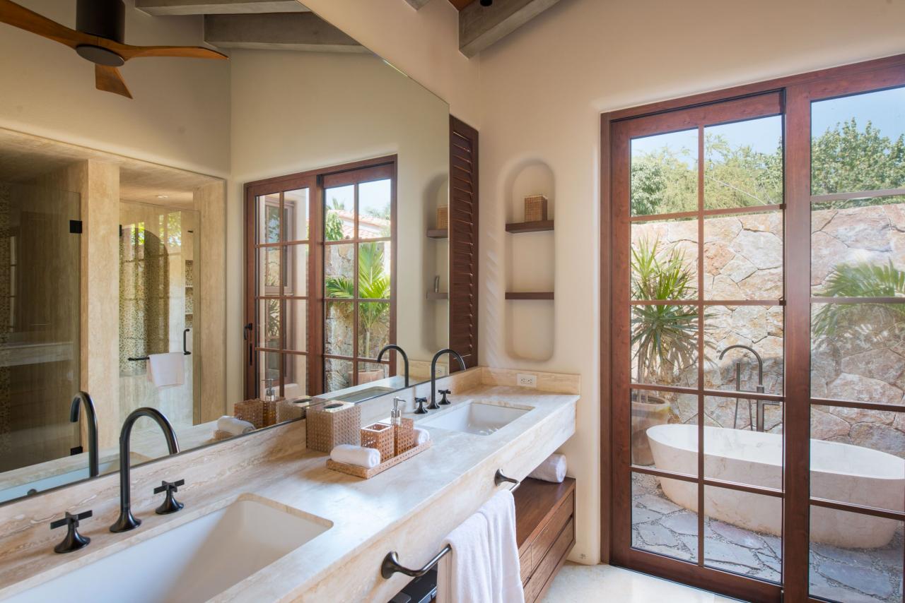 This Punta Mita vacation rental has plenty of amenities inside to keep guests comfortable and relaxed. Villa Susurros has a cinema room with a 119" screen projection video system, 7.1 surround sound, a subwoofer, and comfortable seating. There is also a private area in the basement of Villa Susurros that is equipped with an 8-person dining room and living room that provides a different atmosphere for guests. Villa Susurros also has a spa, a full massage cabin with a garden, steam, and shower. There is also a gym for guests to enjoy that is equipped with a Bose sound system and Technogym equipment such as a treadmill, dumbbells, universal rack, and pulley.