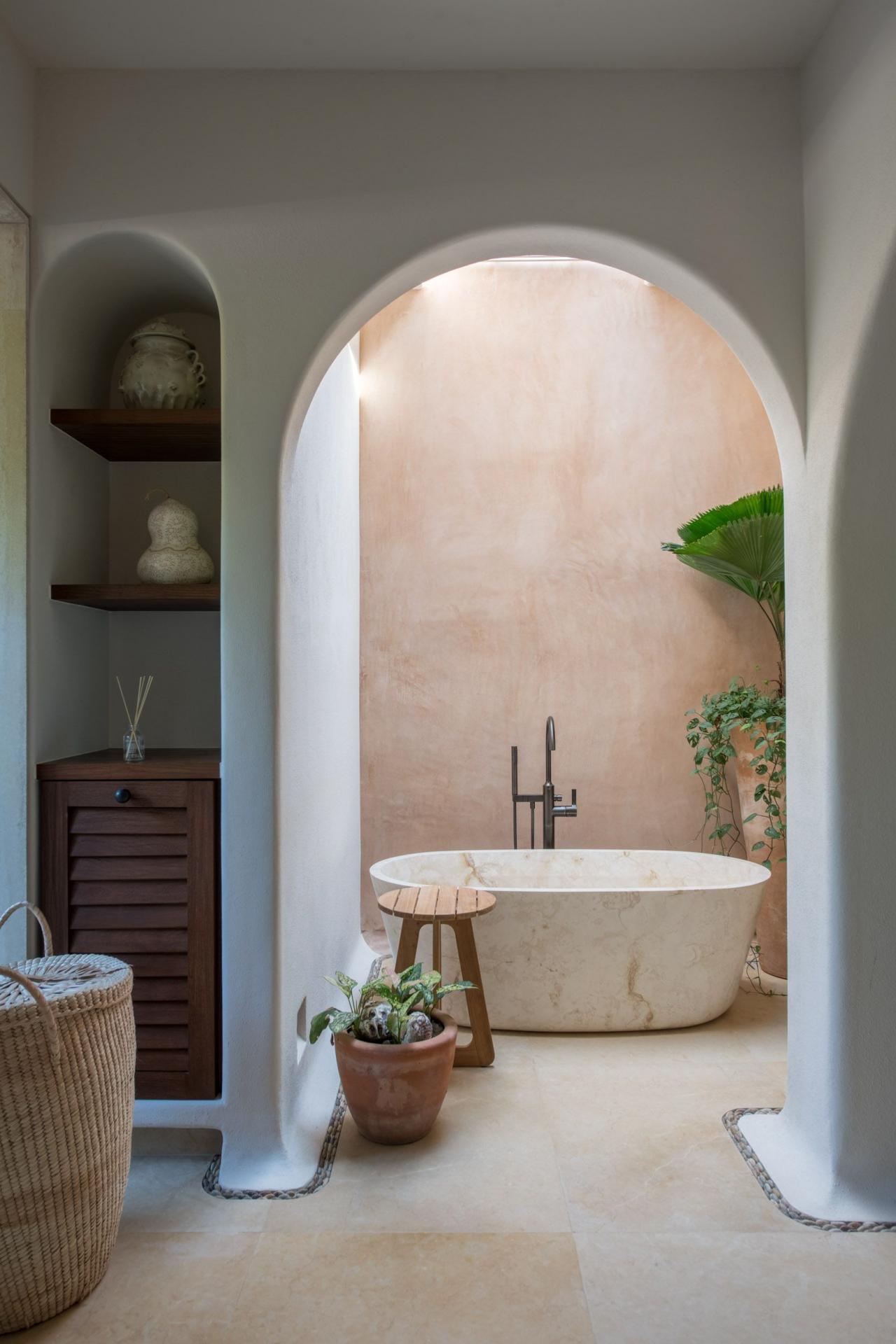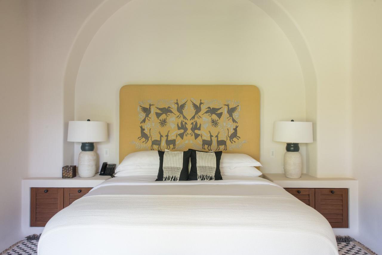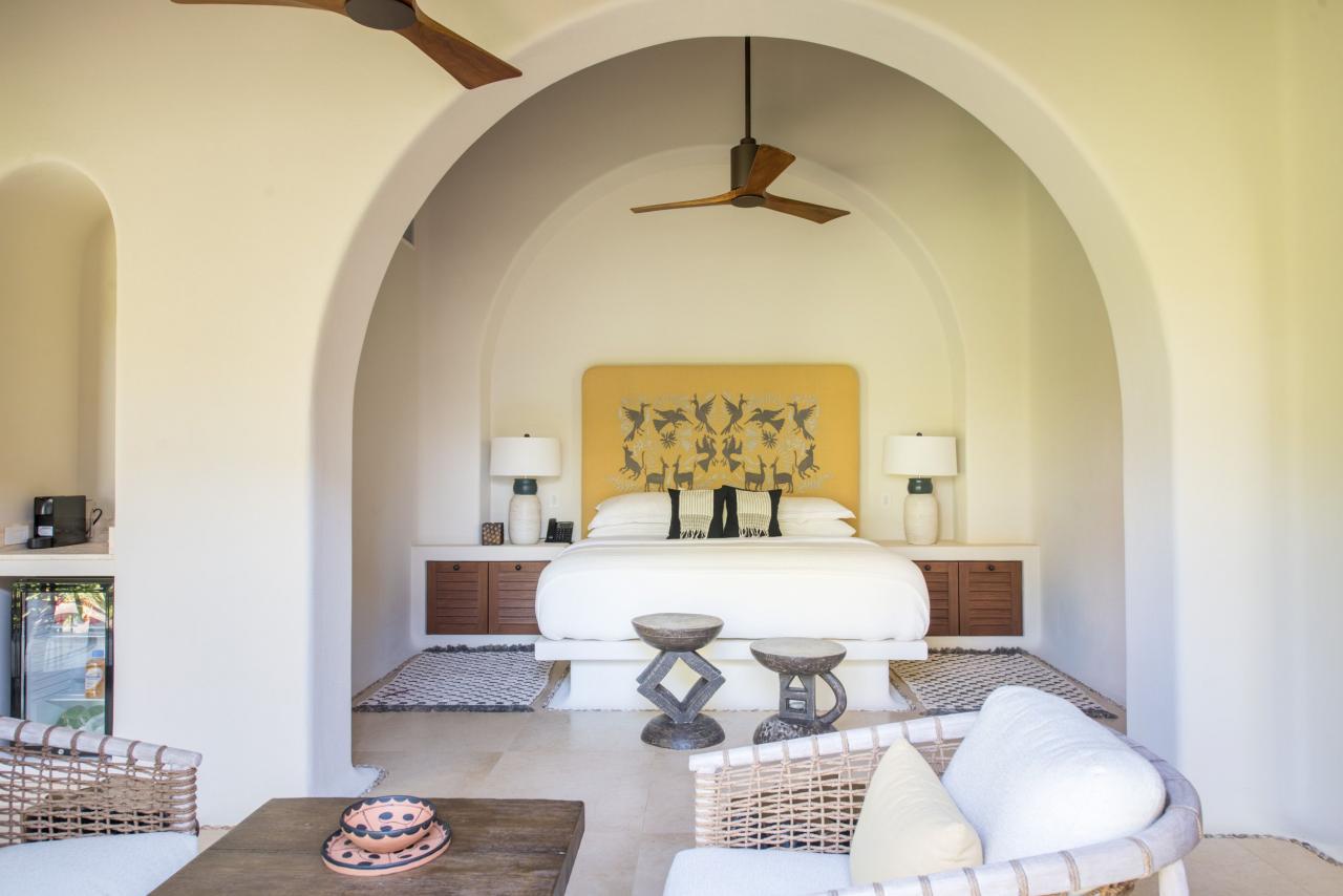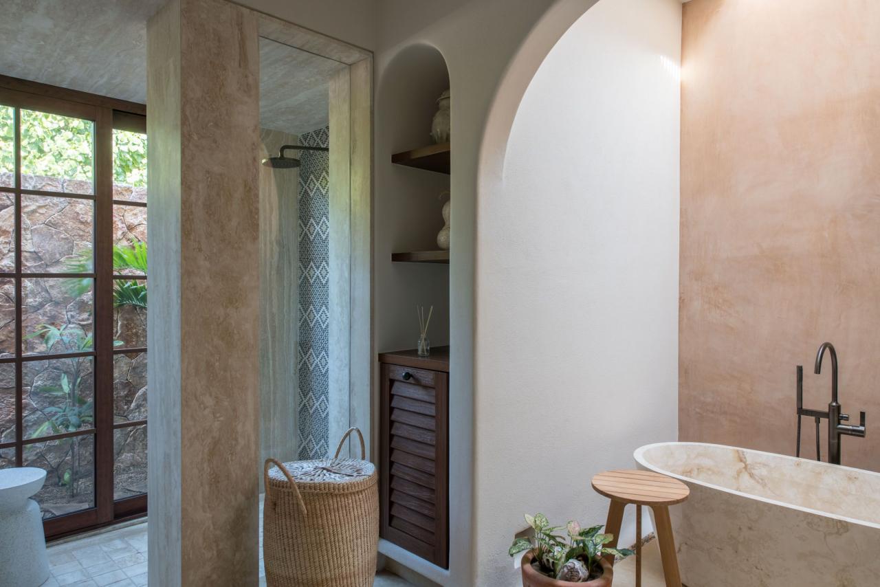Bedroom 1: This suite is equipped with a king-sized bed, service station (minibar), 65" TV, bathroom with an indoor and outdoor shower, an outdoor marble tub in a private garden, dressing room, and a terrace with an ocean view and direct access to the main garden.