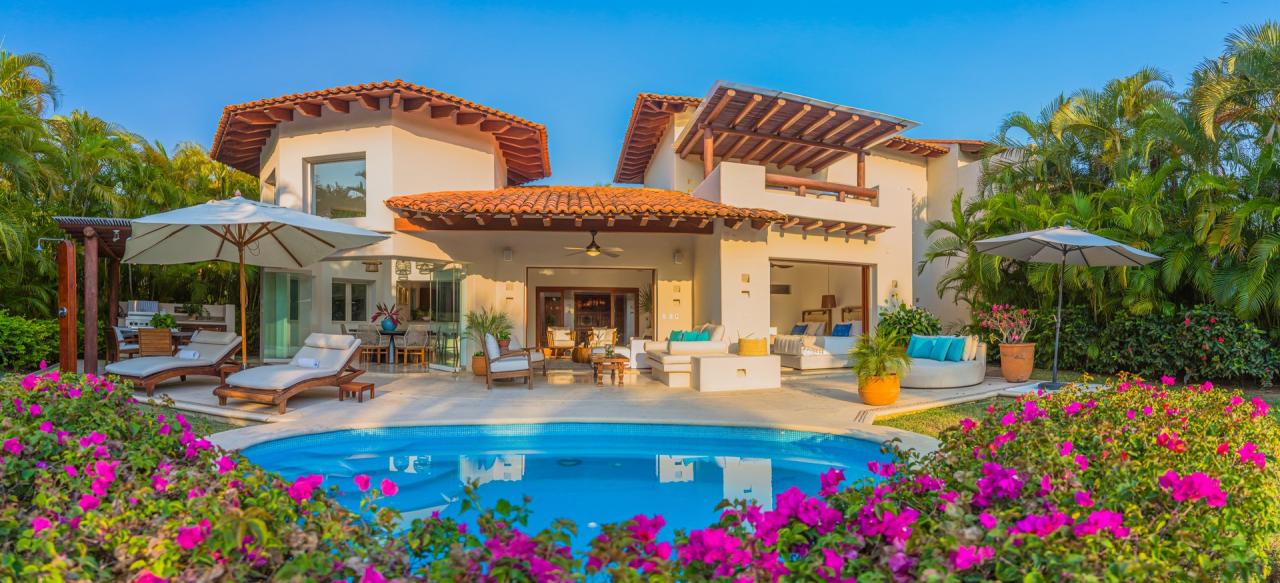 Villa Taci is a luxurious Punta Mita villa located in the exclusive Las Palmas community, designed for a perfect blend of indoor and outdoor living. This stunning property features four bedrooms, a fully equipped kitchen, and a comfortable living area that overlooks the inviting outdoor space. Retractable doors provide a seamless transition to the outdoor area, where guests can enjoy a covered dining space, a grill for barbecues, a relaxing plunge pool, and sun loungers for soaking up the sun.