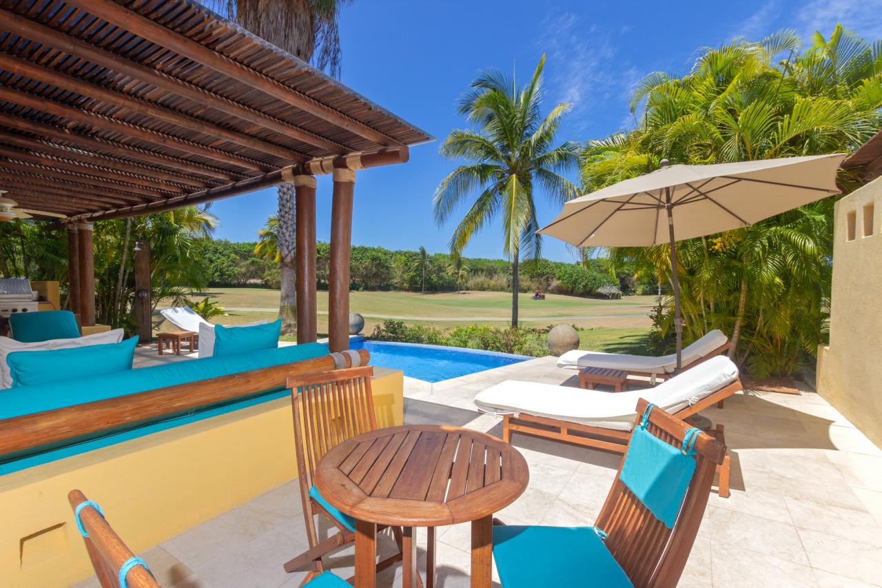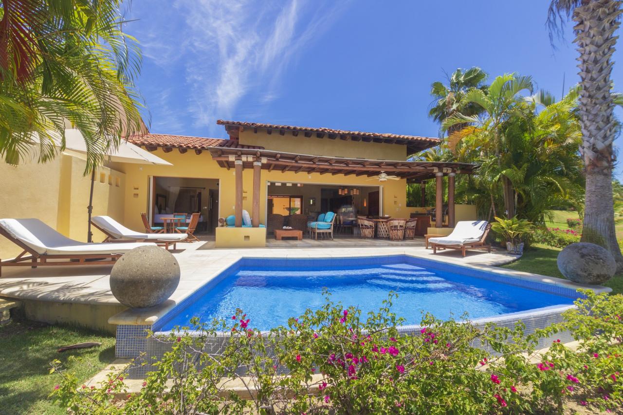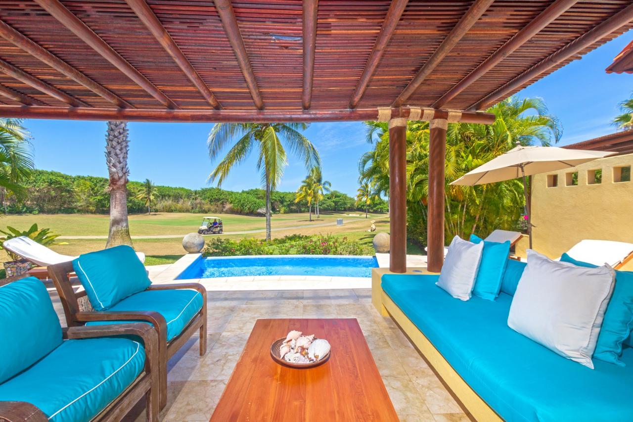 The single level makes this Punta Mita villa easily accessible to those of all ages and abilities. A living/dining room is just adjacent to the fully equipped gourmet kitchen and laundry room. Just outside, guests will find a partially covered terrace with a private pool. Guests at Villa Tamayo will also enjoy a Premier Golf Membership.