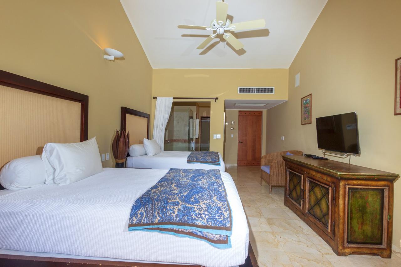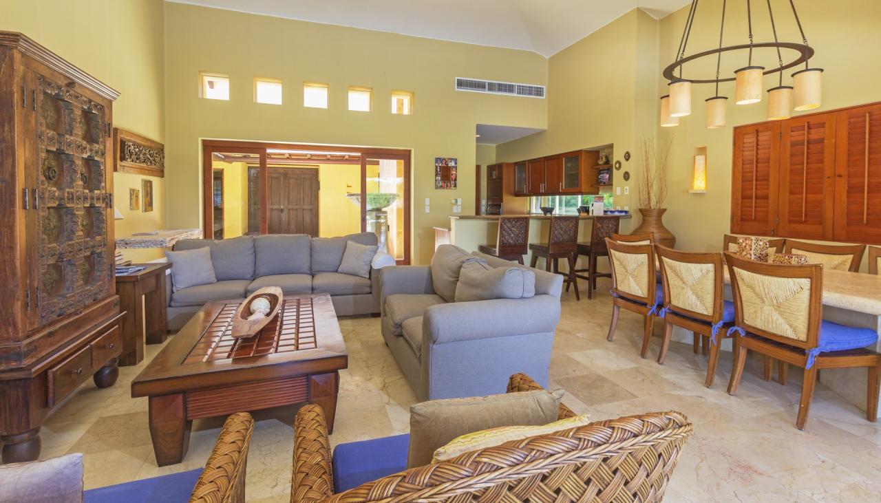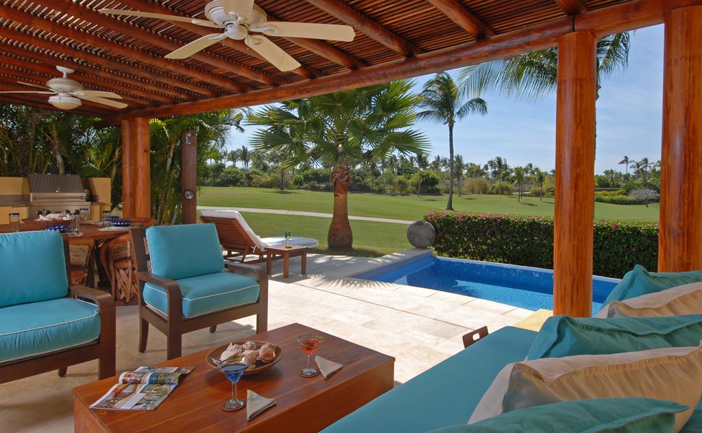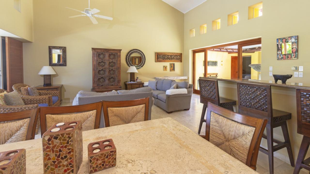 The single level makes this Punta Mita villa easily accessible to those of all ages and abilities. A living/dining room is just adjacent to the fully equipped gourmet kitchen and laundry room. Just outside, guests will find a partially covered terrace with a private pool. Guests at Villa Tamayo will also enjoy a Premier Golf Membership.