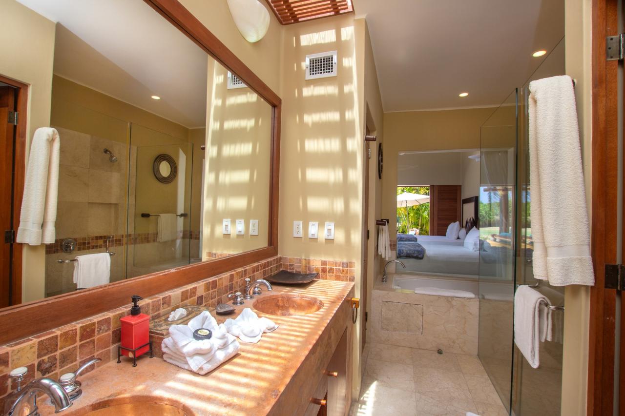 Villa Tamayo is tucked within the lush landscape of Las Palmas. This Punta Mita villa rental is a single level villa with a trio of bedrooms. Villa Tamayo’s bedrooms each have an ensuite bathroom and large walk-in closet. The master suite is home to two private patios, one complete with an alfresco shower.