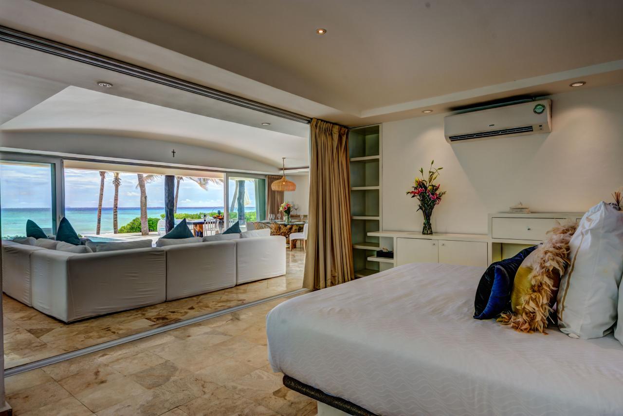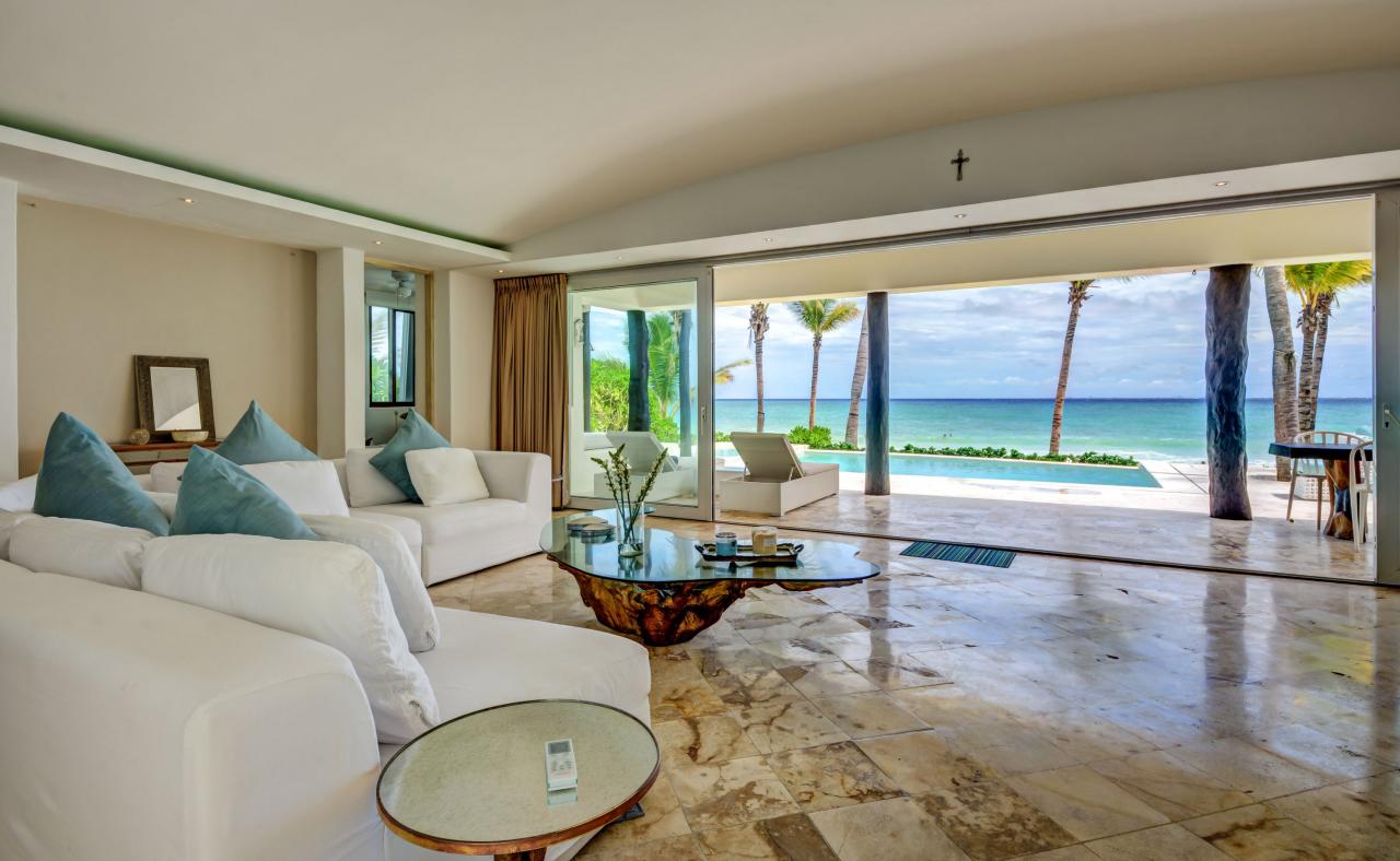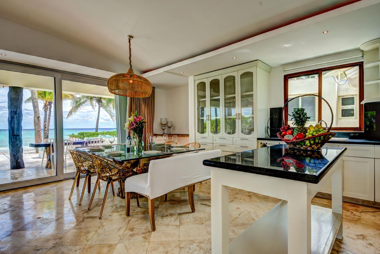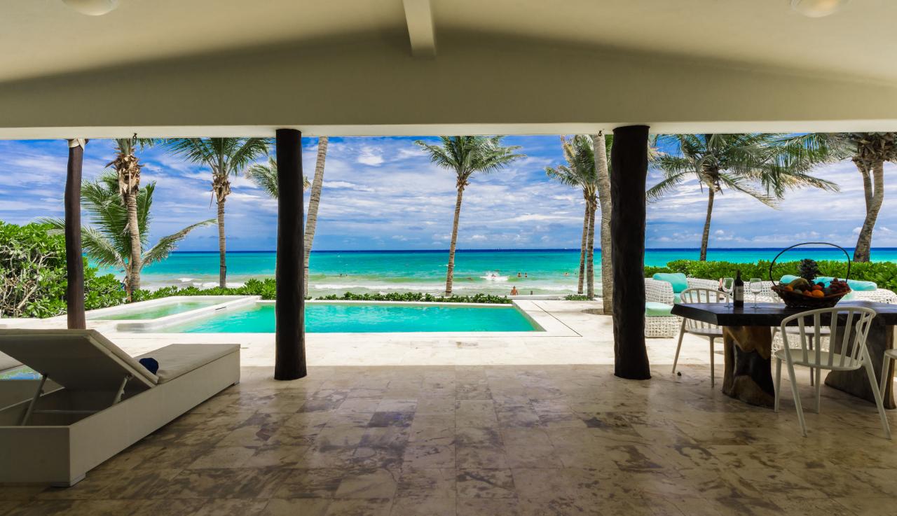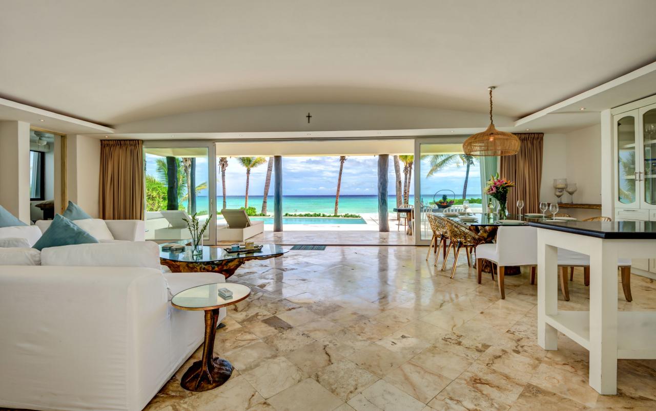 Casa Caramelo is an exceptionally bright, spacious, and elegant beachfront house with an entire wall of windows to enjoy unbeatable Caribbean Sea views from the living room, dining room, kitchen, master bedroom, TV room, and oversized terrace.This gorgeous home features a brand-new swimming pool and quality wooden lounge chairs and patio furniture perfect for a group to enjoy a Mexican vacation in a beachfront dream house.