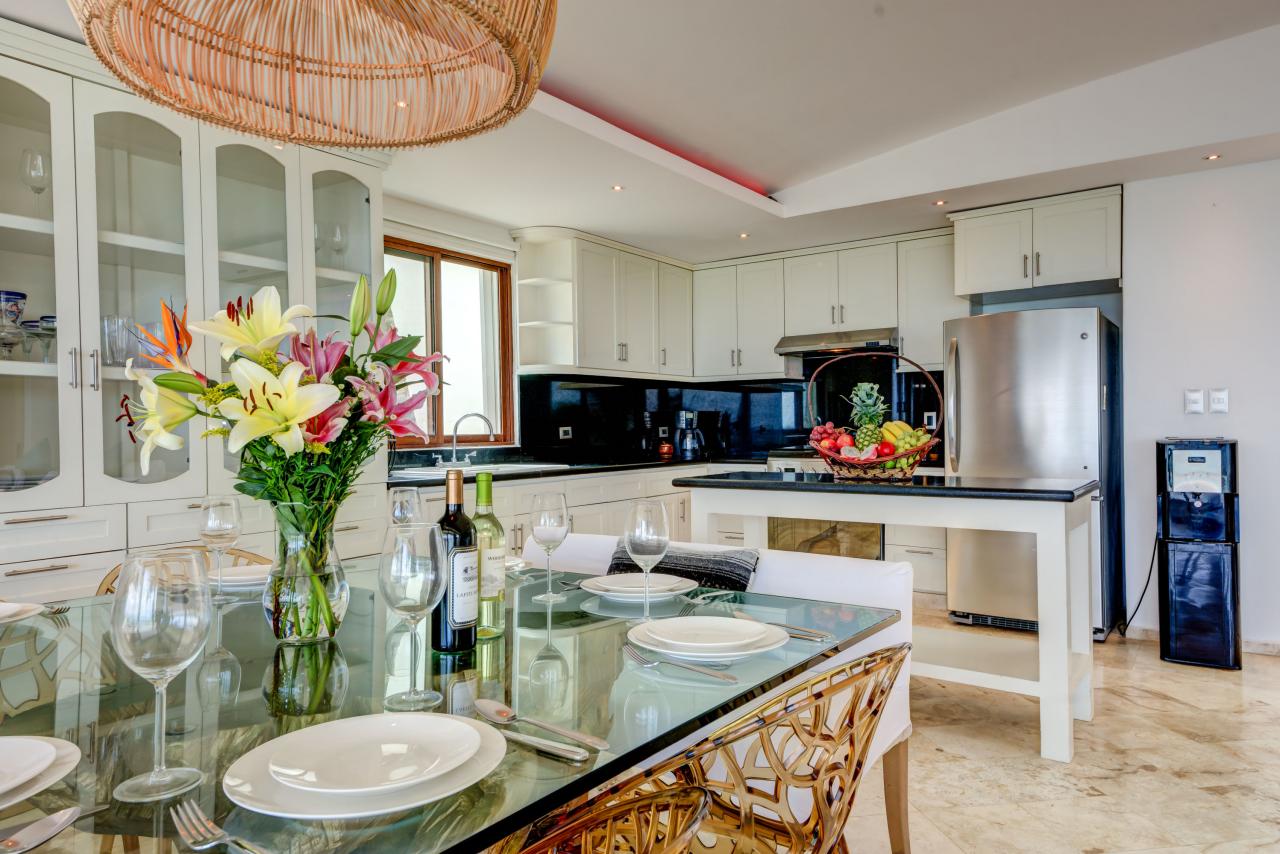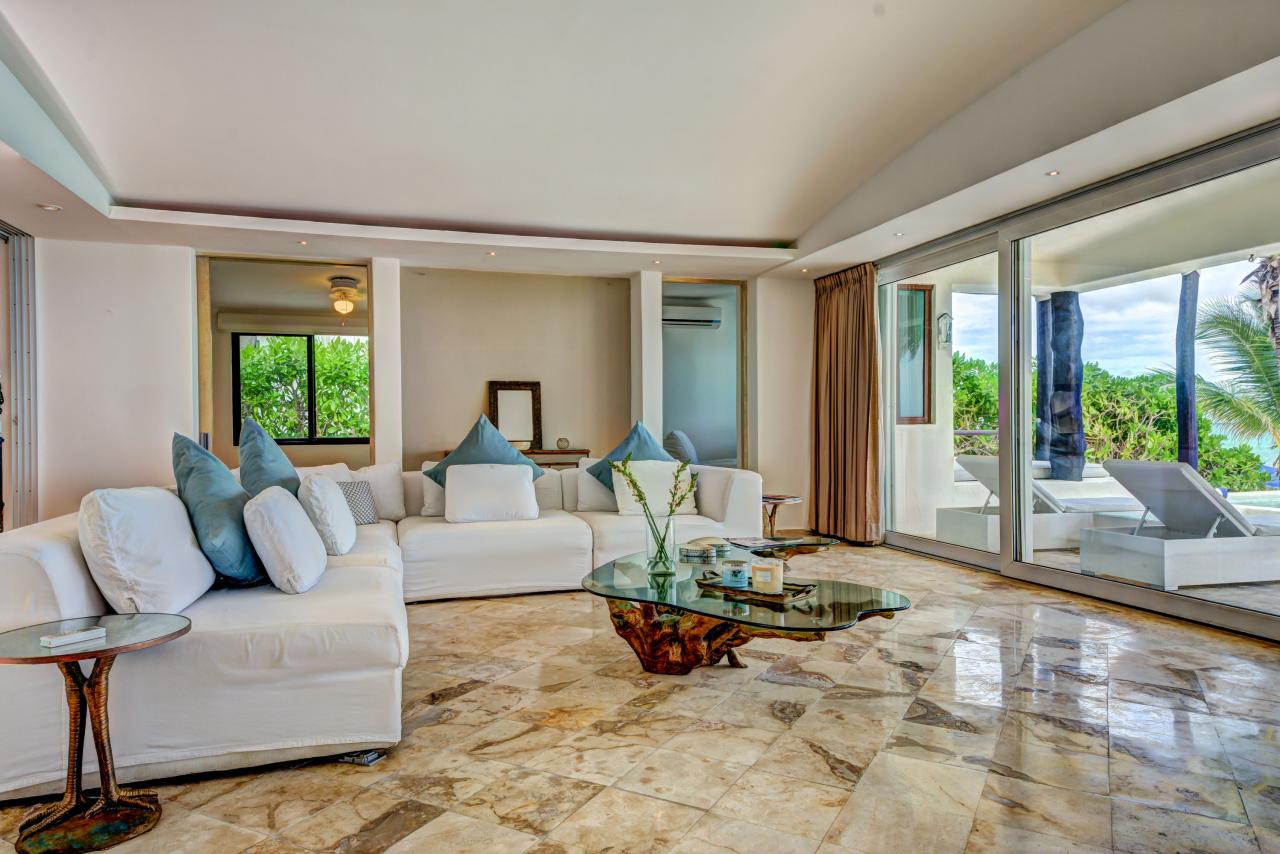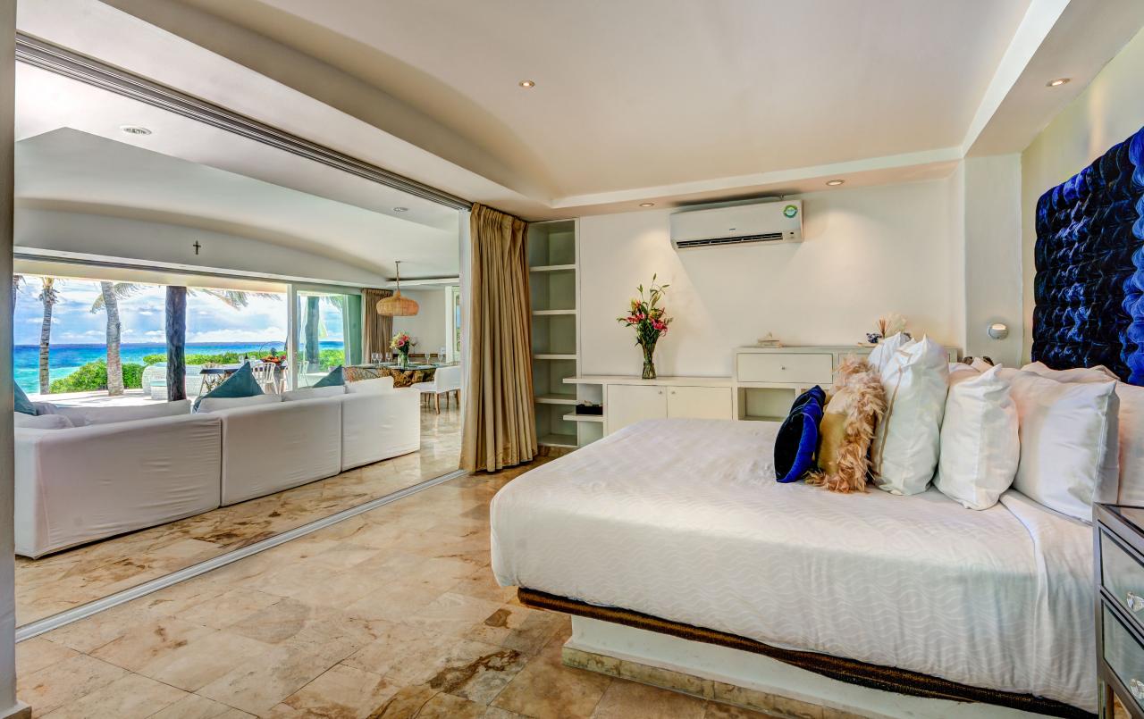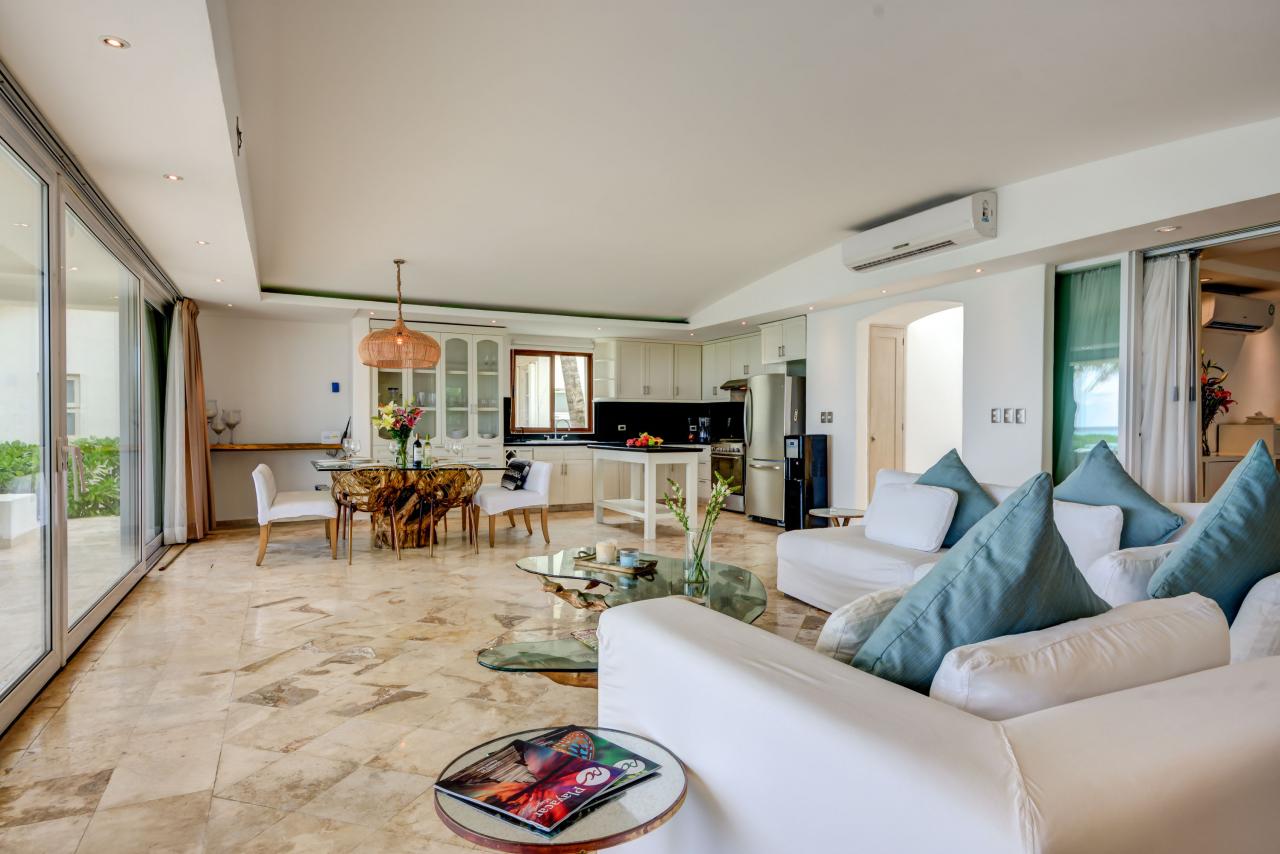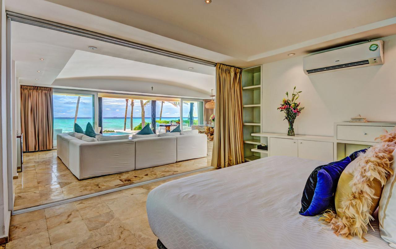 Casa Caramelo is an exceptionally bright, spacious, and elegant beachfront house with an entire wall of windows to enjoy unbeatable Caribbean Sea views from the living room, dining room, kitchen, master bedroom, TV room, and oversized terrace.This gorgeous home features a brand-new swimming pool and quality wooden lounge chairs and patio furniture perfect for a group to enjoy a Mexican vacation in a beachfront dream house.
