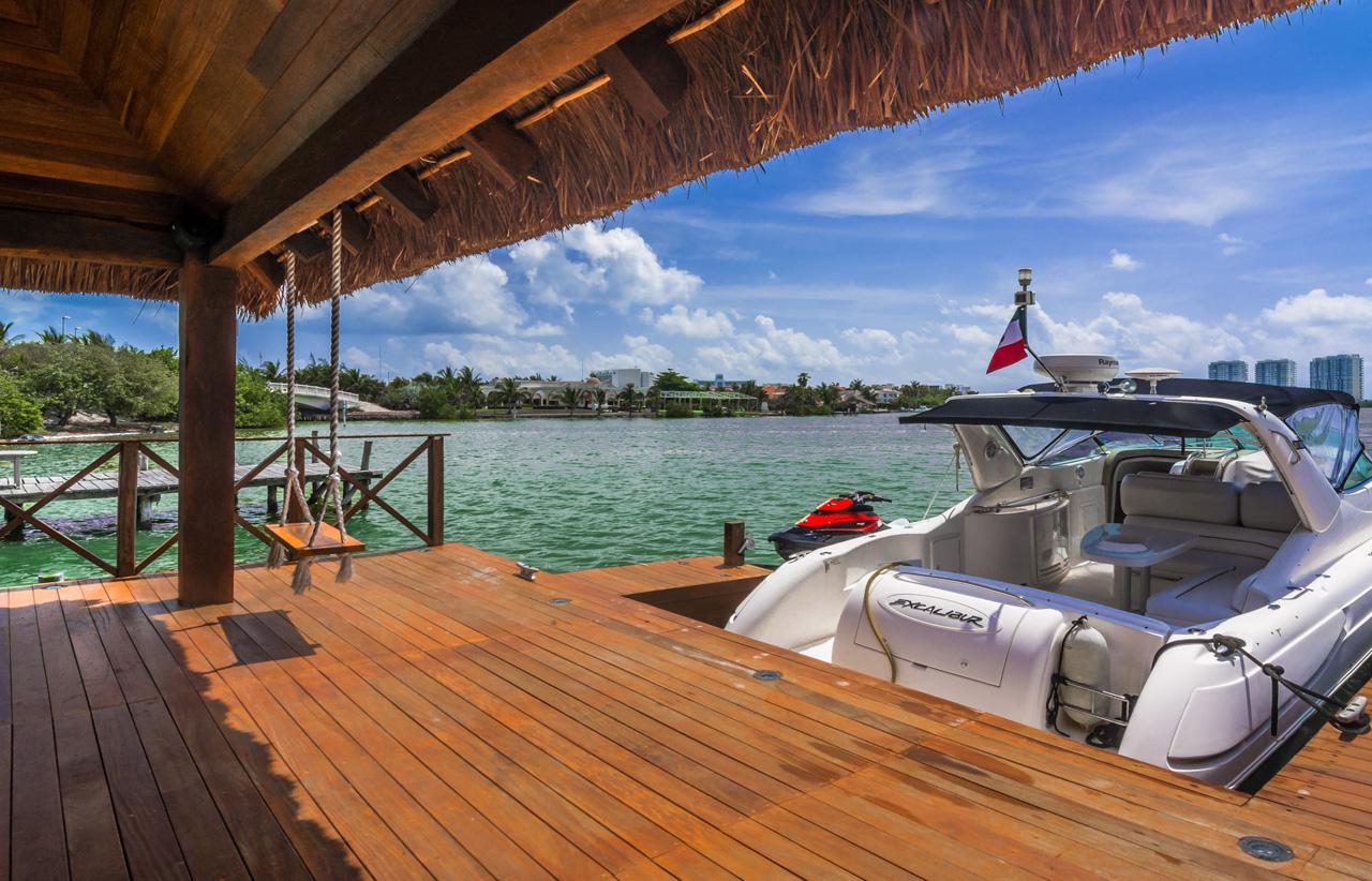 Chic and contemporary; this luxurious villa looks out over the lagoon to Cancun's energetic hotel strip. El Patron Villa offers the perfect luxury getaway for the discerning traveller looking to take advantage of everything the region has to offer. Gather with friends and family on the rooftop terrace where you can admire Cancun’s busy skyline or enjoy cocktails, prepared by your personal butler, on the lagoon jetty.
