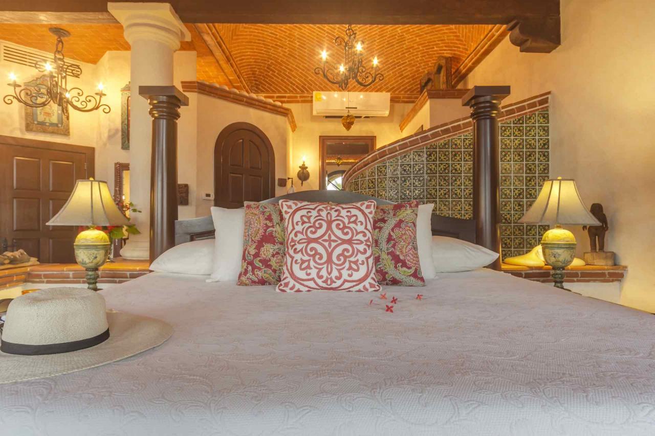 Hacienda Kass is a visually stunning representation of the traditional Mexican Hacienda-style architecture, the only one of its kind on Soliman Bay. An extraordinary, covered entranceway welcomes you to the exquisite villa, a perfect combination for those looking for style, function, privacy and comfort on the beach. The décor of this tastefully decorated & spacious home, from the formal couches, to the luxurious beds and leather chairs were custom made or hand carved in Mexico. Our extensive original art collection graces the walls of the house throughout. The 17 ft foot brick dome ceilings in each room were designed and constructed by fifth generation Mexican masons.