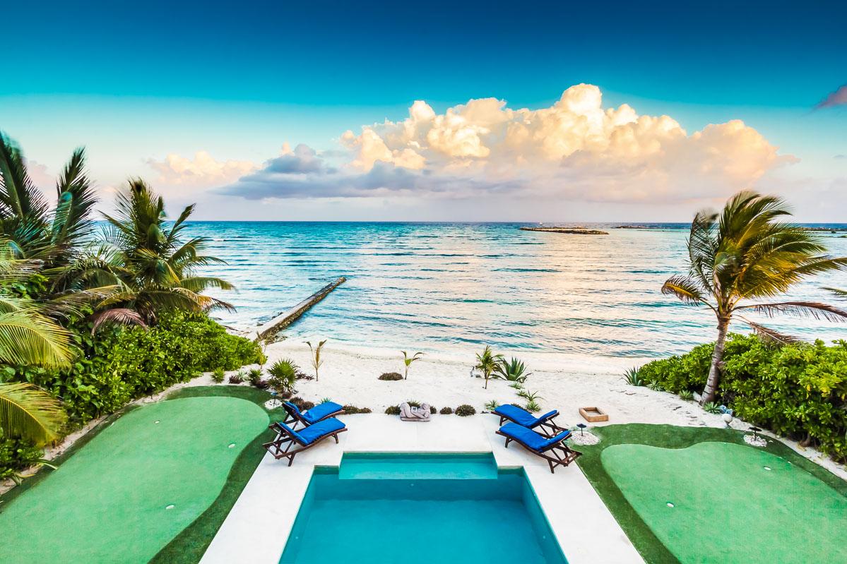 Hacienda Magica is one of the finest homes in Mexico located right on the sandy shores of the Fatima Bay beach in Puerto Aventuras. This villa is a masterpiece of architectural and interior design, with luxuriant and vibrant Mexican style. It is the only beach front villa in the Riviera Maya with a full size tennis court, state of the art ocean front gymnasium, ocean side putting greens and 7 magnificent suites.