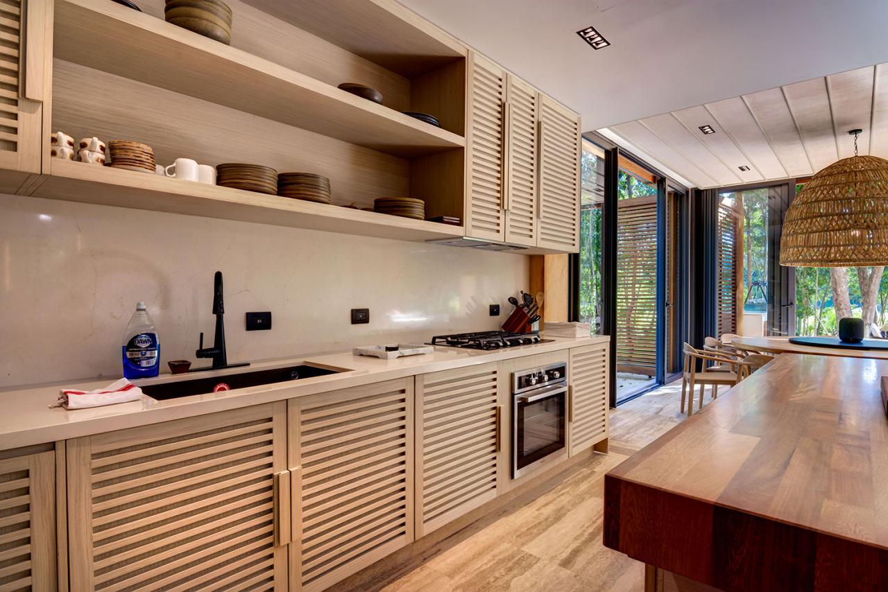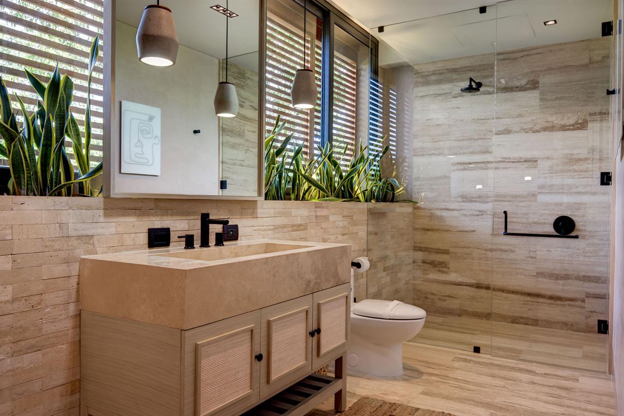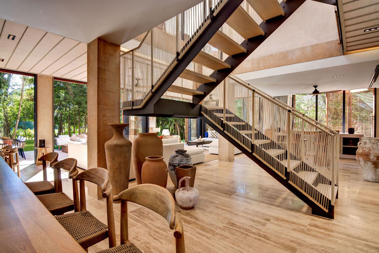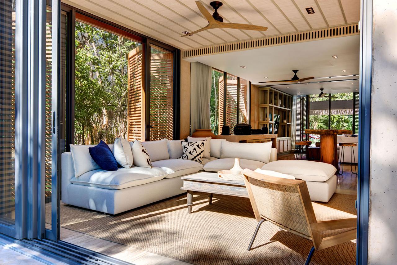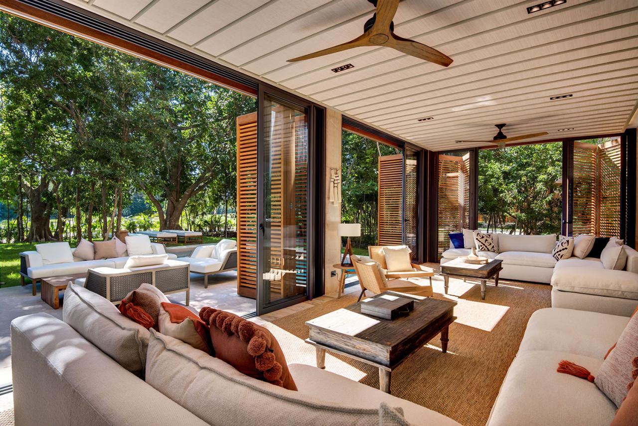 Palm Villa, located in the prestigious Corasol community in Playa del Carmen, is a masterpiece of seamless indoor-outdoor living and organic design. This five-bedroom villa is a perfect blend of modern architecture and natural surroundings, providing an unparalleled experience for family vacations. With 900 square feet of outdoor space, including a stylish plunge pool, terrace lounge, and expansive balconies, the residence is framed by lush greenery that offers both beauty and privacy. Its open-concept cubic layout integrates the villa's elegant interiors with the vibrant natural environment, creating a harmonious retreat.