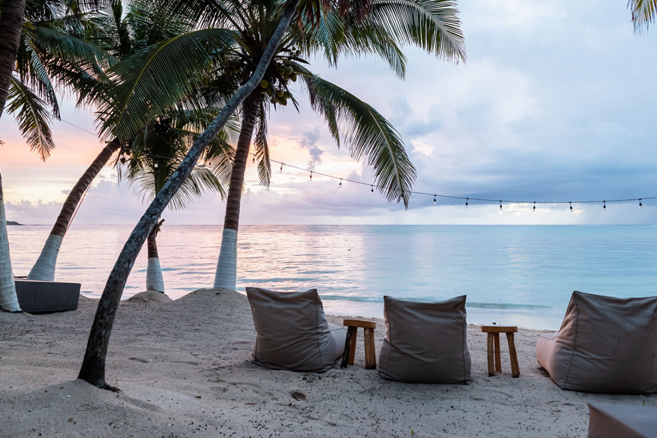 One bedroom features a King bed facing the sea and the second bedrooms features a Queen bed with private terrace facing the tropical garden. These 2 separate accommodations for 2 - 5 people can enjoy the sea breeze as you relax in comfortable outdoors lounges.