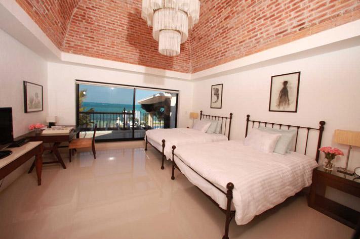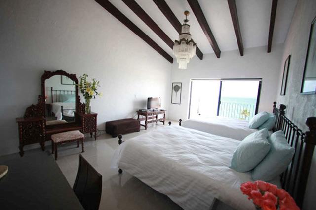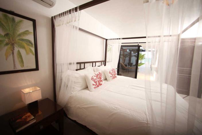 Villa Albatros offers you five oceanfront luxury rooms and a fully equipped garden apartment. The villa provides a total of four king size beds and four queen size beds. The Villa is also equipped with a Bose surround sound system in the living room and outside terraces. The master suite is located on the top floor. It features a king-size bed, walk-in closet, and powder room, as well as a large marble bathroom with a jacuzzi and a private balcony overlooking the blue sea. The first floor offers a large luxury room with two queen beds, a private terrace with stunning views overlooking the ocean, a walk-in closet and marble bathroom. On the second floor you will find a premium ocean view room with two queen beds, a private terrace with fantastic ocean views and its own bathroom. On the ground floor there are two water-view premium bedrooms featuring king-size beds, full marble bathrooms, shared kitchenette, walk-in closets and private patios. These two bedrooms have direct access to the garden, beach and swimming pool areas. The villa's garden apartment is fully equipped with its own complete kitchen, king size bed, sofa, dining room area, private entrance and garden views.