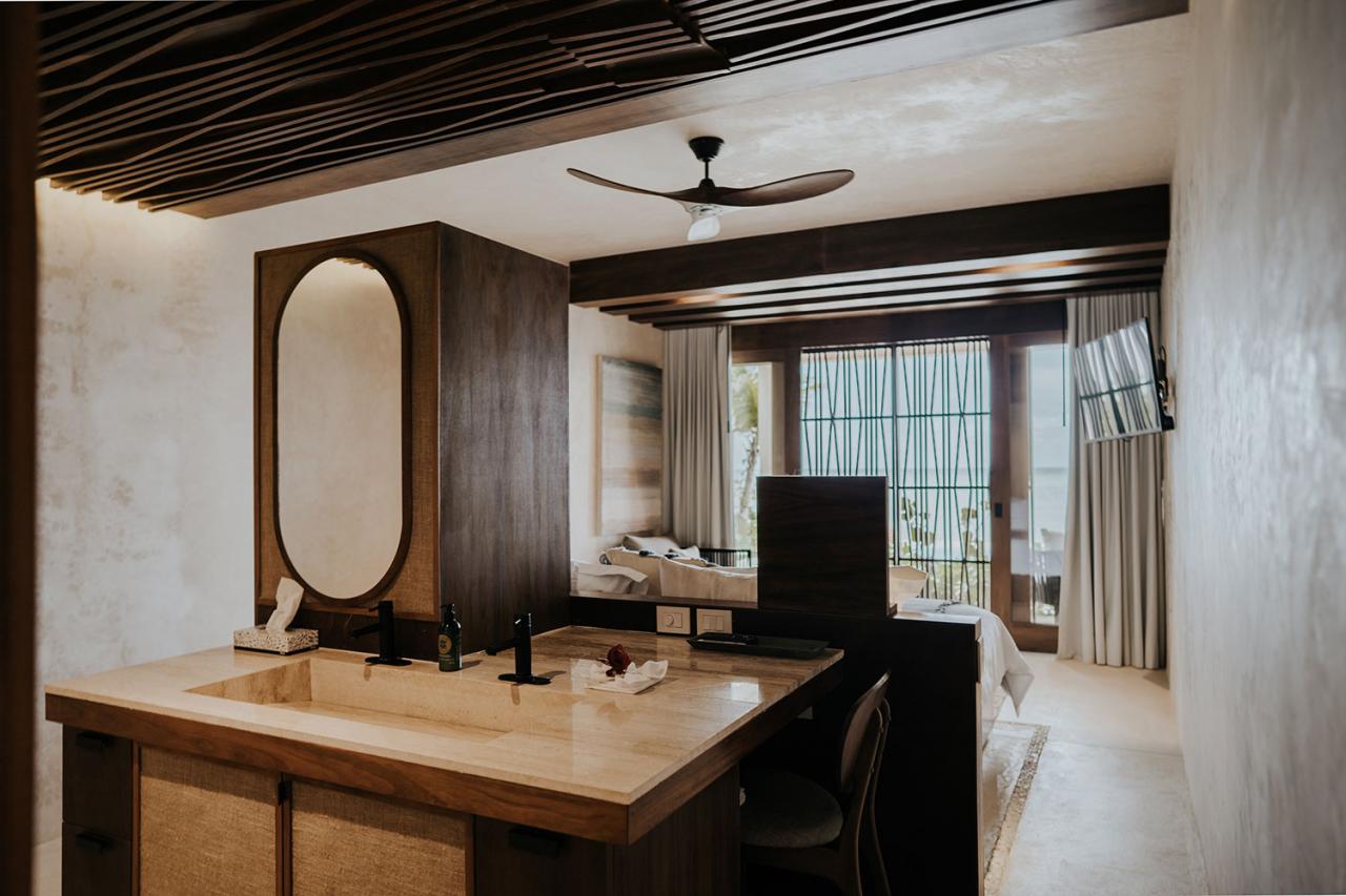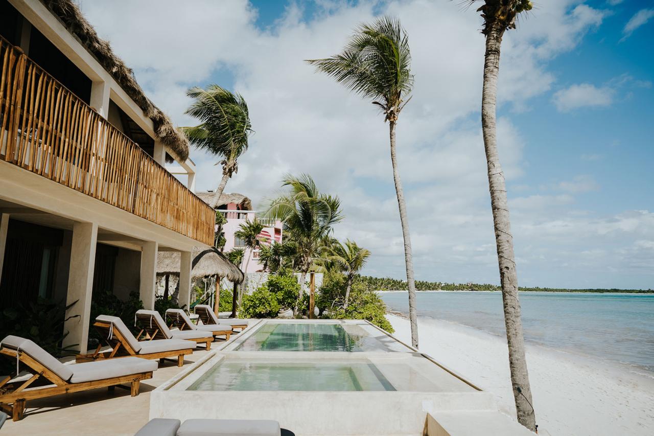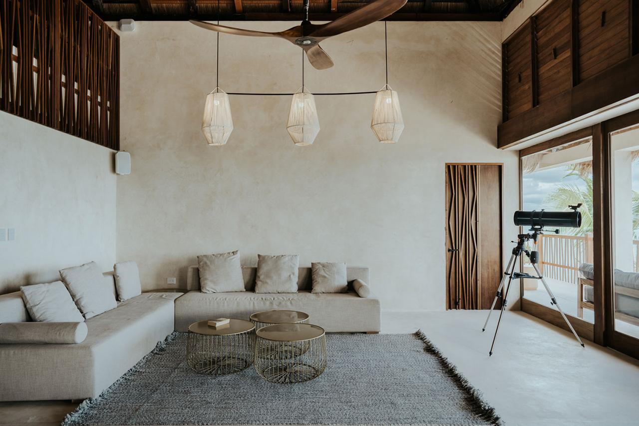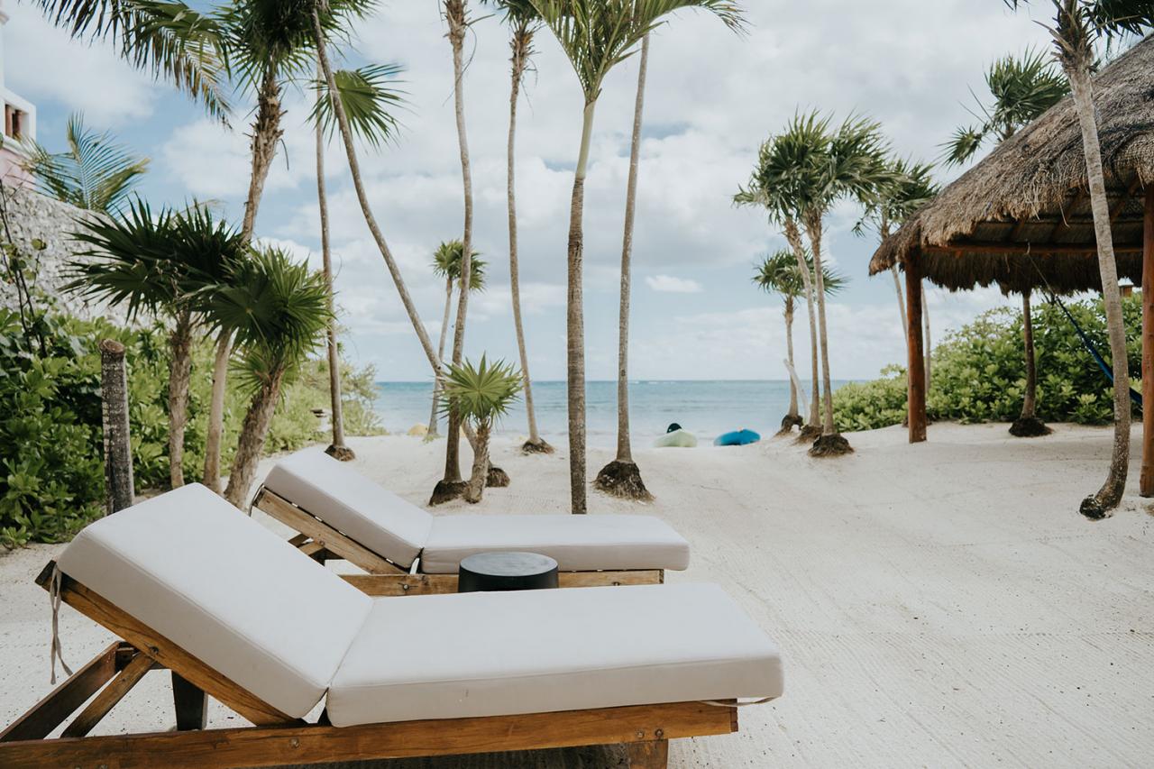 Guests can enjoy Villa Amaite's seamless outdoor spaces, where a pool and terrace blend into the white sands of Soliman Bay, inviting relaxation by the water or alfresco dining. Indoor living areas capture the appeal of a beachside bungalow while enhancing it with sophisticated aesthetics. Located just 20 kilometers from Tulum, Villa Amaite is a tranquil hideout that combines the beauty of the Riviera Maya with easy access to the vibrant attractions of this famous beach town, making this an ideal Riviera Maya vacation.