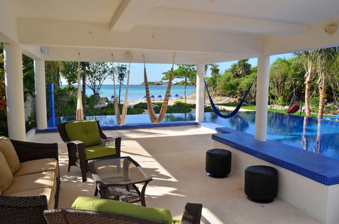 Villa Bellamar is a gorgeous 13 bedroom, 13 bathroom, beachfront property in Akumal. This quiet villa was built with luxury and comfort in mind. The open floor plan and spacious interior make it so easy to visit and entertain with your family and friends. Enjoy your meals in the large dining area off the kitchen or outside under the covered patio. You will be amazed at the views you'll take in as you eat, swim in the private pool or sunbathe on the rooftop deck. Feel free to take an afternoon siesta in one of the hammocks. This property can accommodate up to 40 adults making Villa Bellamar an ideal location for family celebrations, weddings or workshops. Come stay at Villa Bellamar and enjoy the old-fashioned hospitality and timeless elegance!