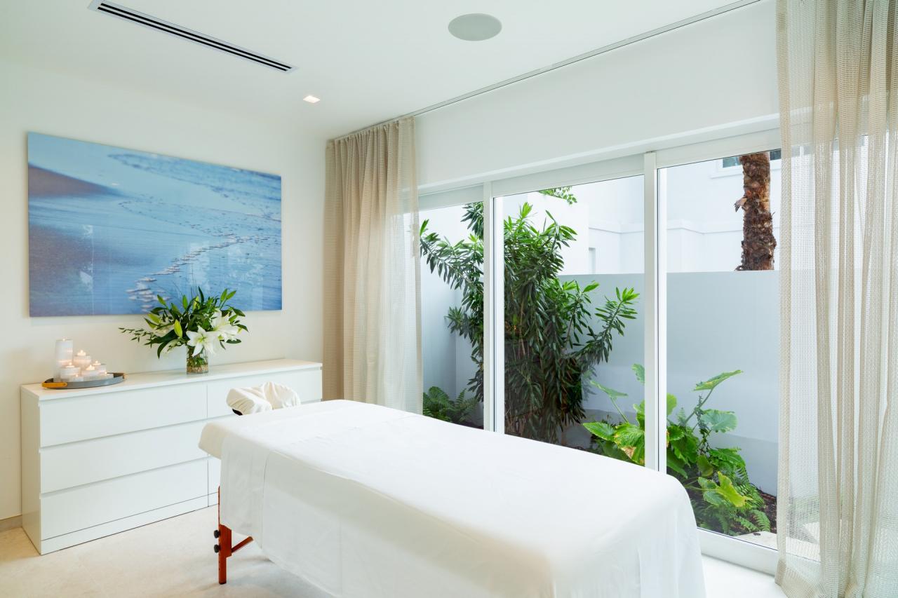 Inside, guests have all the luxuries they can ask for, including an office with desktop computers, an oceanfront family TV area, two full kitchens, a total gym equipped with a Peloton bike and treadmill, and a massage room with a full bathroom. Guests are also offered grand outdoor facilities, including a regulation-sized lighted pickleball court, a heated pool with Baja decks and an integrated spa, a lounge pavilion with TV, a dining pavilion, a grill, kayaks, stand-up paddle boards, snorkeling equipment, bicycles, a firepit with seating, and a mosquito misting system.