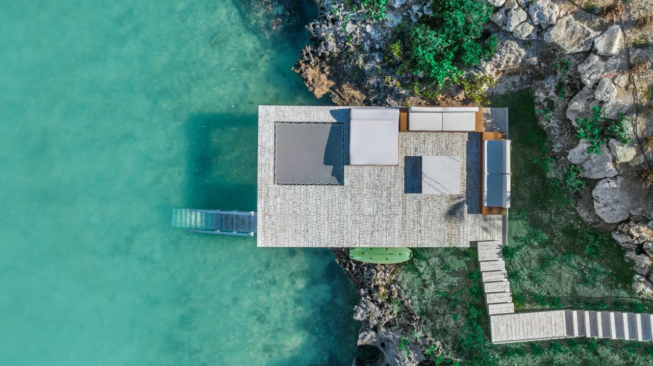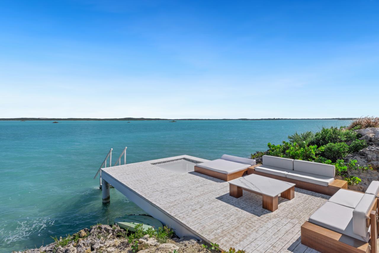 Ocean Breeze is a five-bedroom villa located in Chalk Sound in Turks and Caicos. This Turks and Caicos villa overlooks the stunning turquoise waters and is a contemporary waterfront villa that stands out. Features of Ocean Breeze include an expansive poolside terrace with a bar and BBQ and relaxed seating and lounging areas on multiple levels. Ocean Breeze provides direct access to the warm waters that are perfect for swimming, kayaking, and paddleboarding.