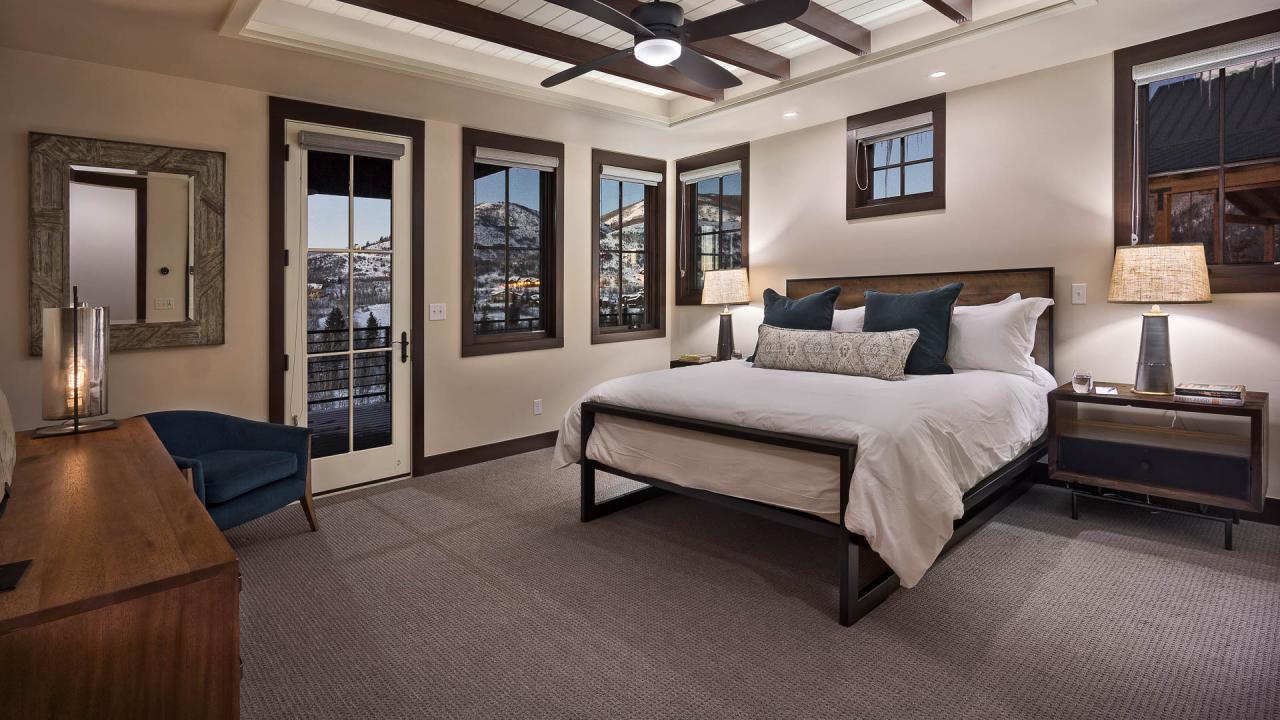 Blackstone Lodge features westward views of vivid sunsets over Fish Creek and Buffalo Pass. This villa mixes the feel of the west with contemporary design. The great room offers a large space accentuated by vaulted ceilings (with fan). This home has been designed to incorporate rich wood floors and large windows drawing the outside in. Guests will feel at home snuggled up in front of the brick fireplace after an active day on the slopes.