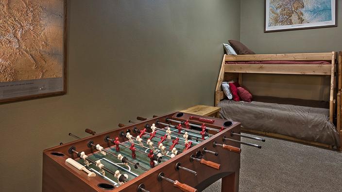 Creekside Chalet's lower level incorporates a large rec room with Wi, home theater (60in Smart TV, surround sound), books and board games. Family and friends will be sure to enjoy in all that this room has to offer.