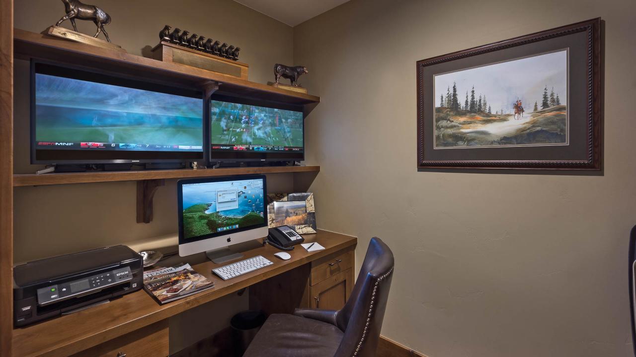 The home office nook boasts an iMac home computer and high speed Wi-Fi throughout the residence allowing internet service for all guests. A printer is available at the front desk and guests can also videoconference with the front desk from the home office.