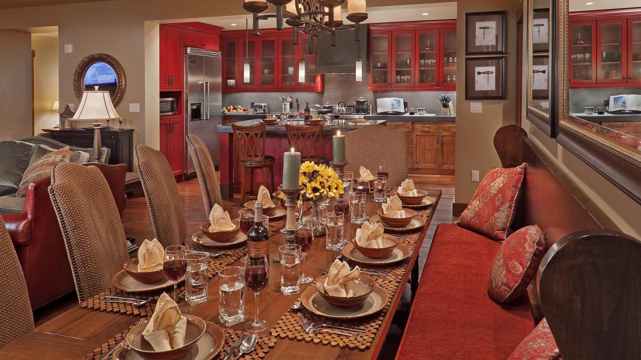 The Residence features four bedrooms, living and dining area connected to the kitchen with plenty of room for the entire group to gather. The professionally equipped kitchen with Viking appliances will delight the aspiring chefs in your group who can also grill in the great outdoors at the built-in Viking gas-grill on the private deck. The kitchen and dining area, adjacent yet separate from the living room, will allow you to enjoy relaxed meals just across from the majestic fireplace.