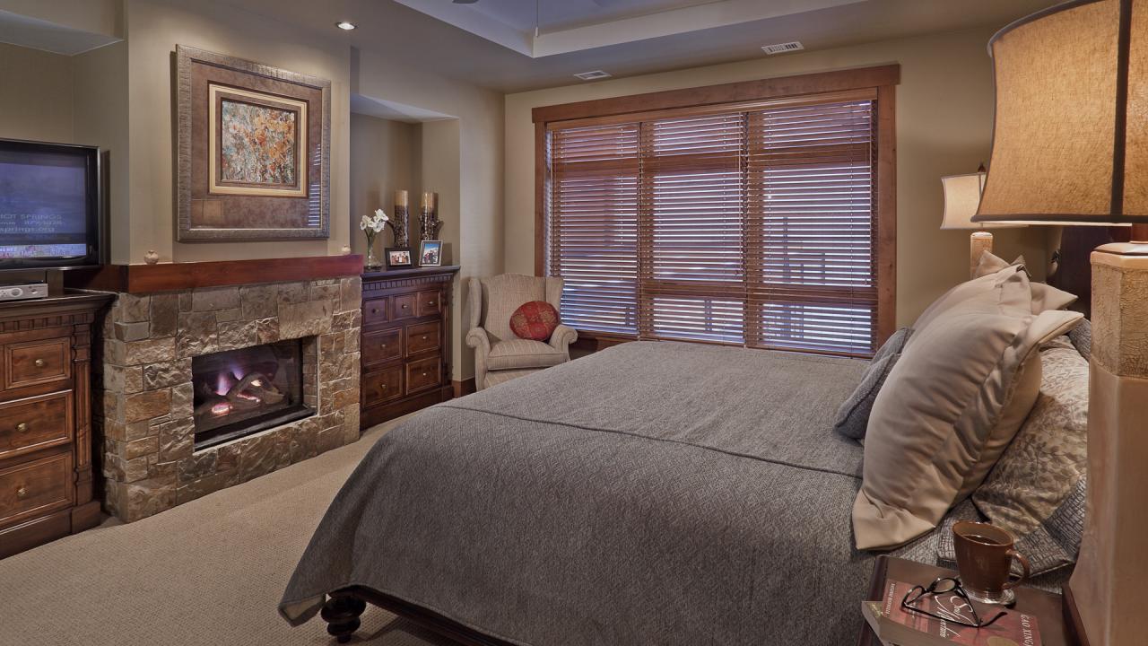 - Bedroom 1: Primary with king bed, en suite bathroom with shower and bathtub, fireplace, TV, DVD player