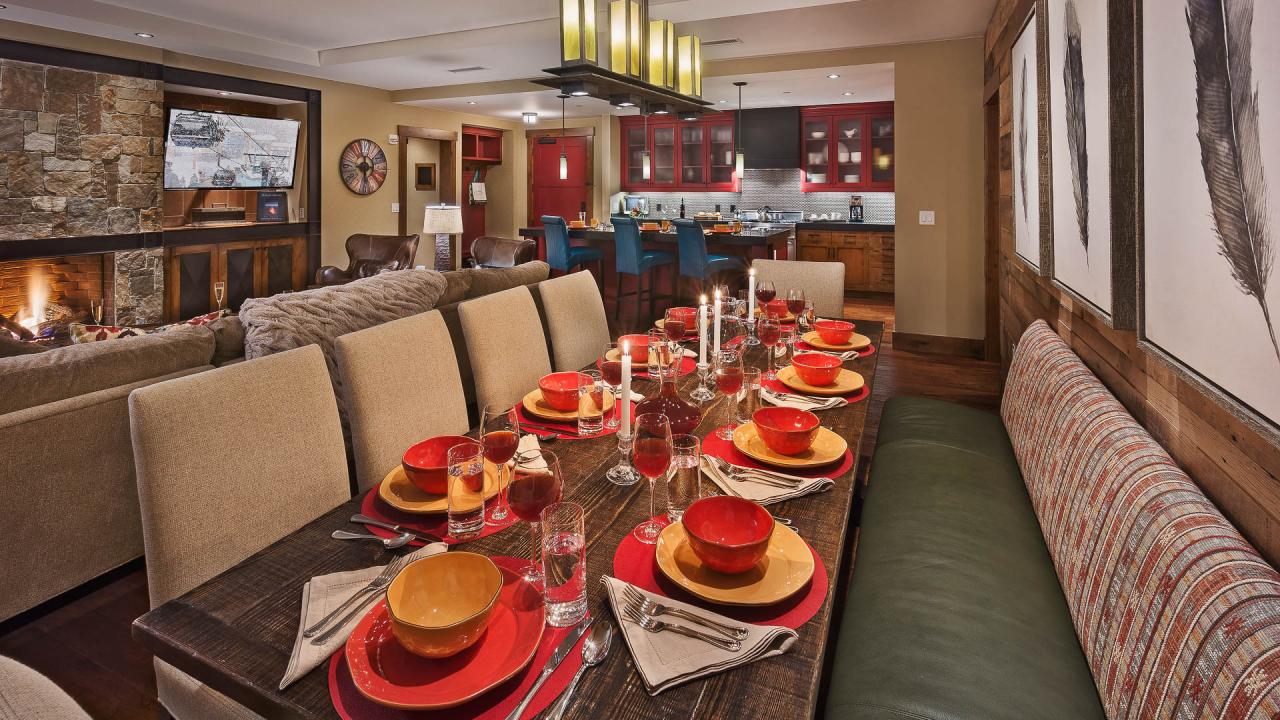 This spectacular OSP private residence features a large living area with views overlooking the Plaza of the Steamboat Mountain village and directly up to the ski trails. The open floor plan connects the living and dining areas to the kitchen abundant space for the entire group to be together.