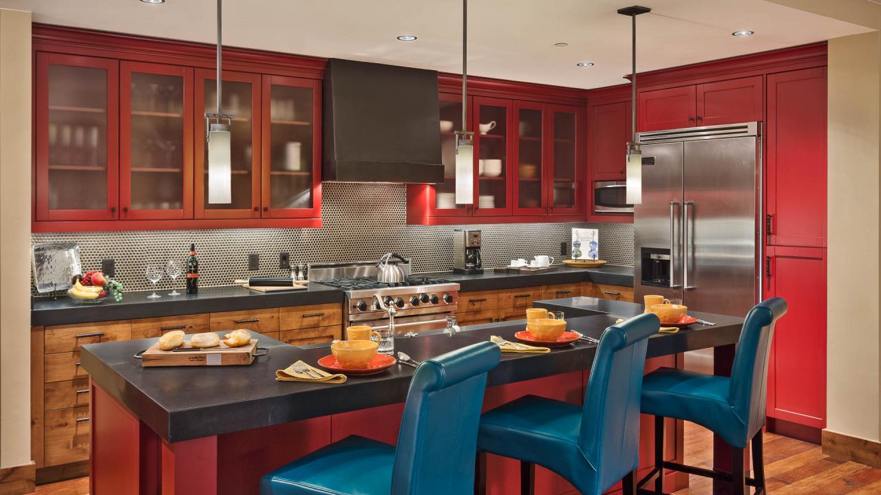 OSP residences are designed for entertaining. There is seating for 10 at the dining table and room to seat more at the kitchen island.