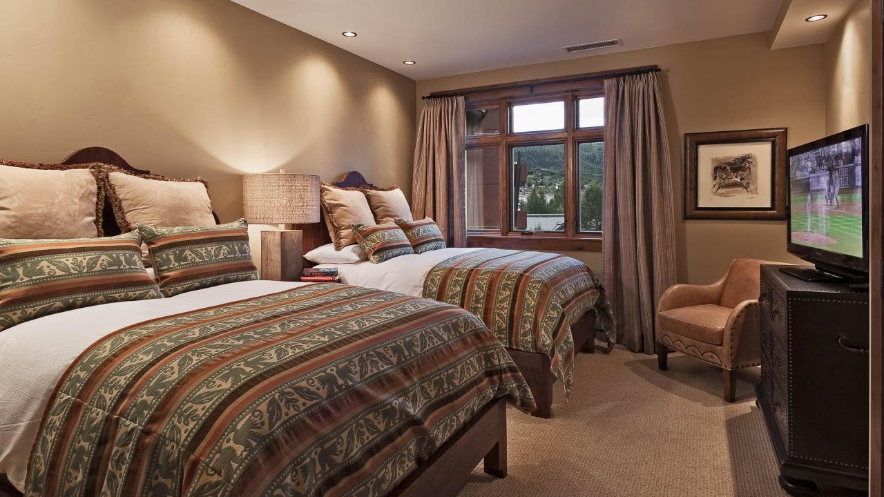 - Bedroom 3: Queen bed, private bathroom, TV