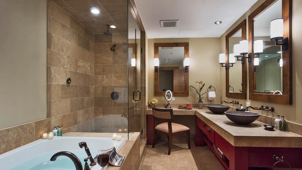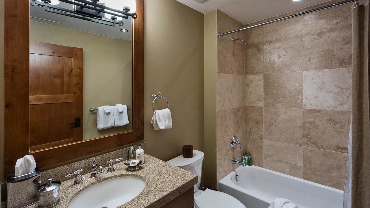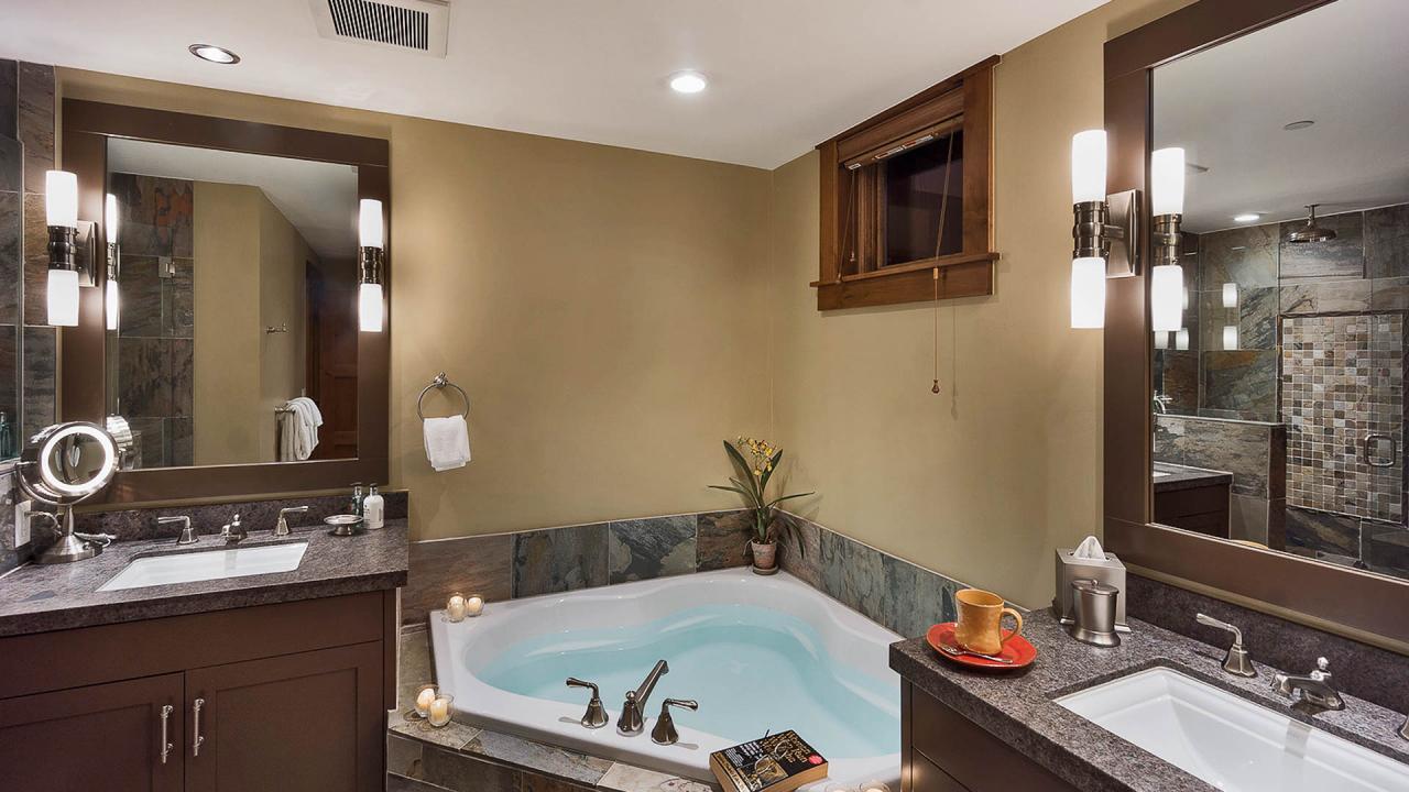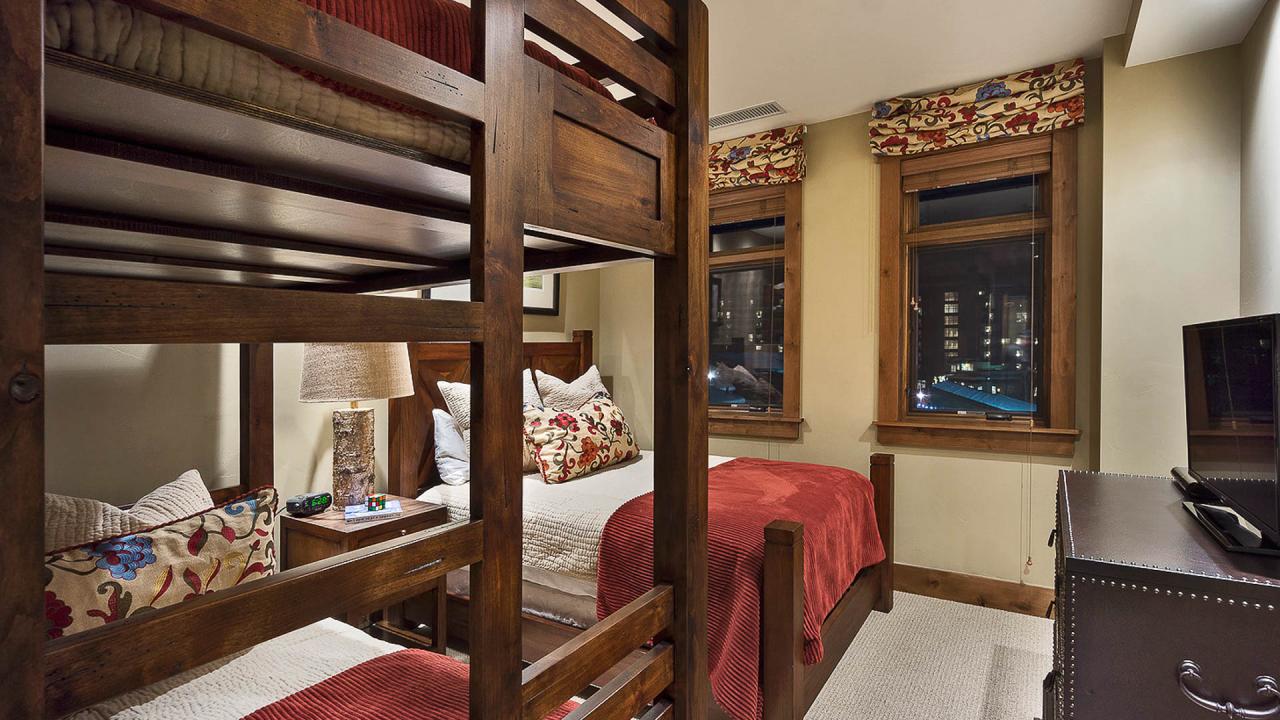 All One Steamboat Place residences feature luxurious furnishings and décor throughout the home. Each master bedroom offers a gas fireplace and the master bath features a steam shower and Jacuzzi tub. The second master features a king bed and large ensuite bathroom. One of the remaining bedrooms has a queen over queen bunk bed and an additional queen bed with ensuite bathroom. The final bedroom has a twin over twin bunk bed and an additional queen bed. This bedroom shares its bathroom with the rest of the residence.