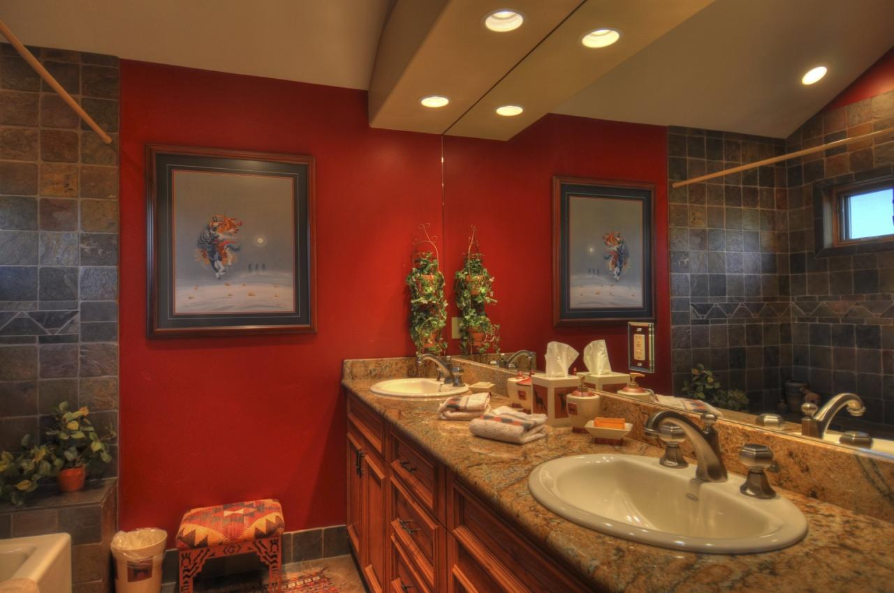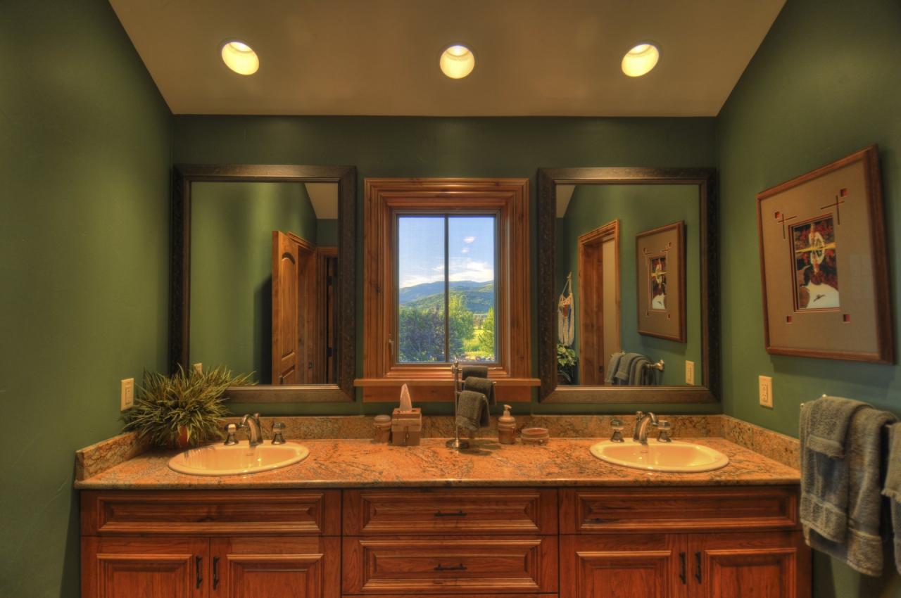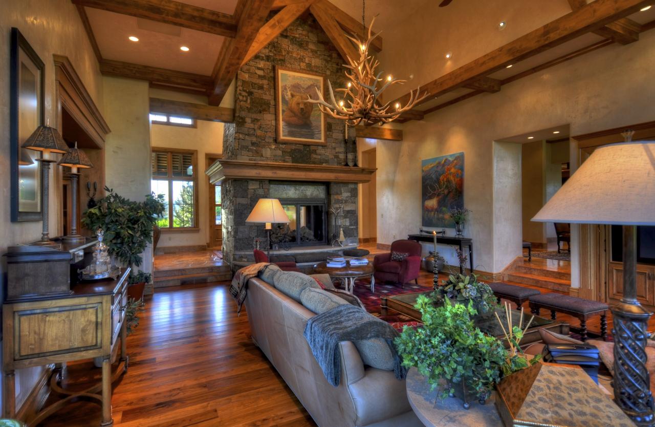 Guests will immediately be greated by a two story rock fireplace which passes through to the Great Room featuring 25 foot ceilings, a large TV, and plenty of comfy seating to allow enjoyment of the massive windows and views. The kitchen is just off hte great room and will thrill chefs of every level. Granite counters, 6-burner gas stove, and copper hood area ll waiting to inspire a creative dinner to spring from the double oven and oversized refrigerator. The dinning room seats 12 comfortably and features windows with views, much like most rooms of the house.
