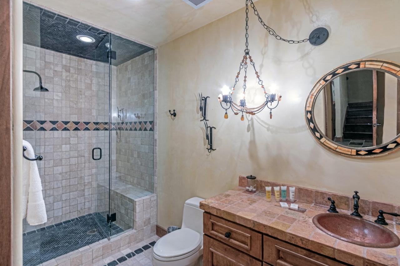 - Bedroom 3: Two full beds, one twin bed, en suite bathroom with shower