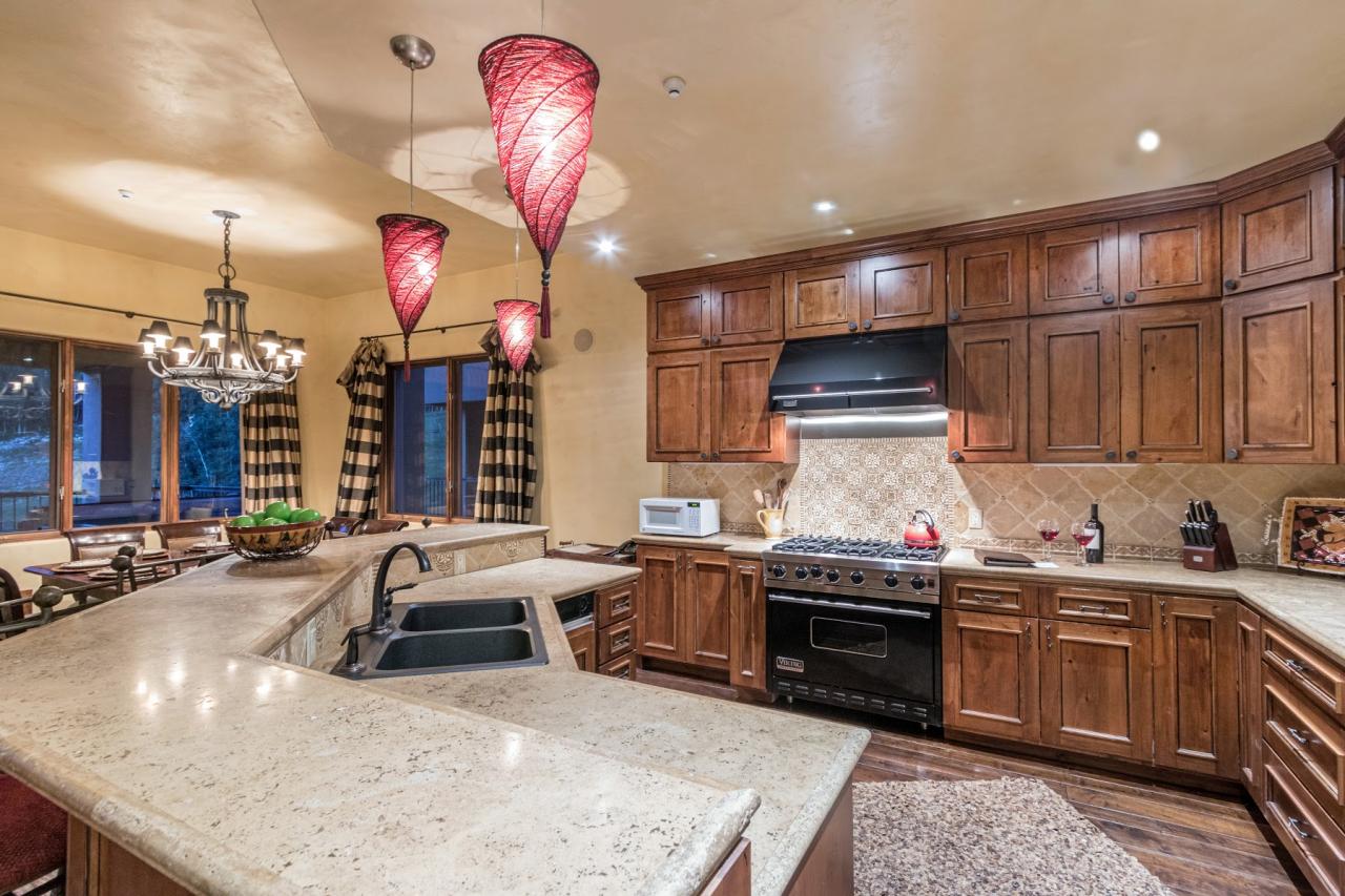 Step into the great room and be wowed by views of the San Sophia Ridge. Sit by the fireplace or play pool or whip up a yummy meal in the kitchen that has granite countertops and a Viking gas range. Watch the skiers go by while you soak in your own private hot tub on the deck which overlooks the Misty Maiden. Also on this level is the master suite, complete with a large sitting area, TV, deck and large bathroom with a two-sided gas fireplace to warm both the bedroom and bathroom. The master bathroom has both a jetted tub and a steam shower.
