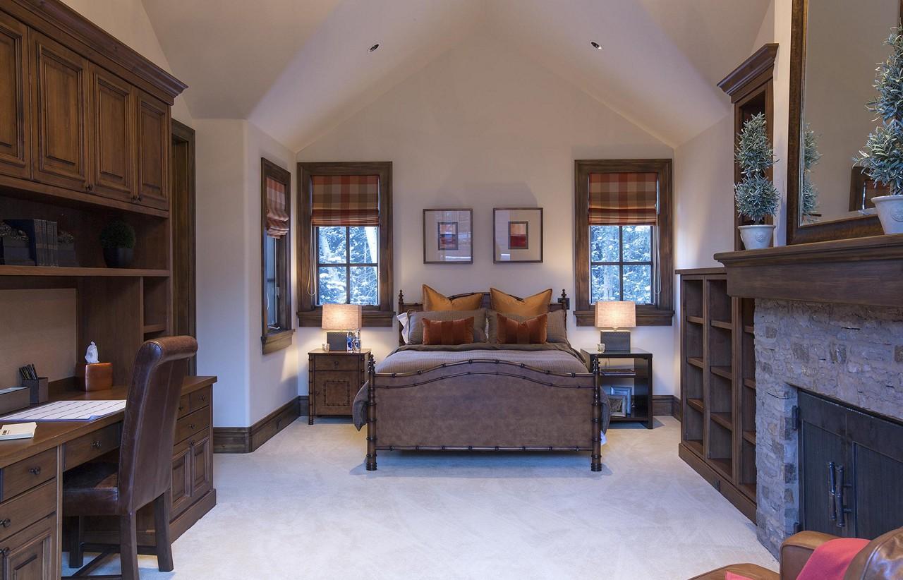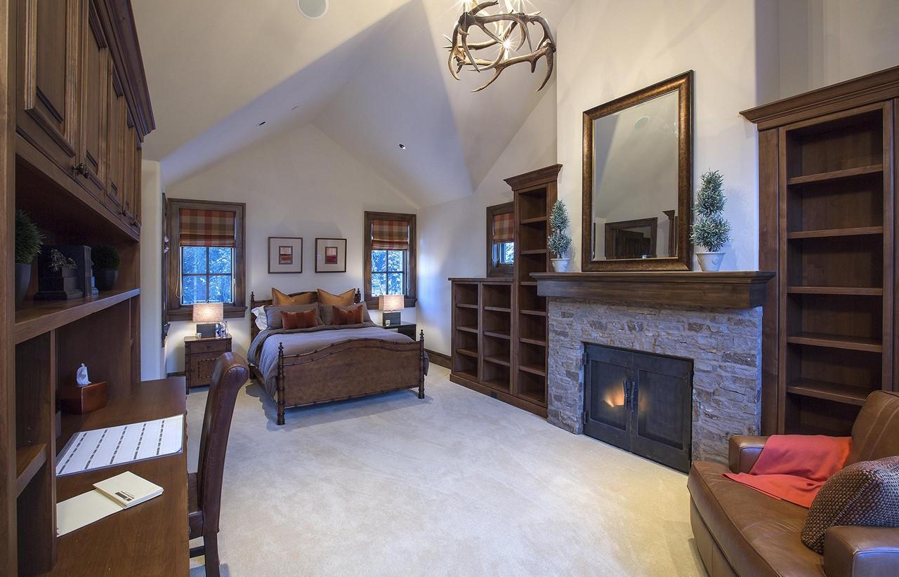 The King Master Suite sits at the opposite end of the home’s main level and is absolutely stunning with its hardwood floors, further vaulted ceilings, a gas fireplace and two wingback leather chairs. Those lucky enough to occupy this luxurious suite also have incredible San Sophia views out the large picture windows to the south, as well as a door leading on to the home’s back deck and hot tub. The en suite bathroom is truly incredible with its steam shower, granite countertops and gas fireplace.