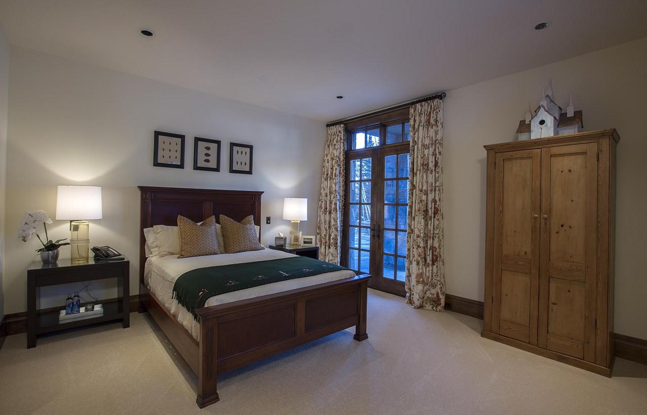 Upstairs are five incredible guest suites, including the famed Knightsbridge bunk room, accessible through an authentic wooden gate, protected by two suits of armor. Two sets of twin bunks are built into the wall and enjoy their own en suite bathroom with dual vanity sinks, full glass shower and granite countertops. Just outside this room is a seating area lined with a comfortable sectional sofa which faces a TV and game table. Four additional guest suites occupy the rest of the upper level - one twin, one full, one queen and one king. Each bedroom has its own en suite bathroom, all of which have full showers and granite countertops. The twin and full guest bedrooms both have deep soaking tubs. The queen suite is perfect for those who cannot leave work behind entirely, with its large work desk, steam shower and Juliette balcony for a breath of fresh air.