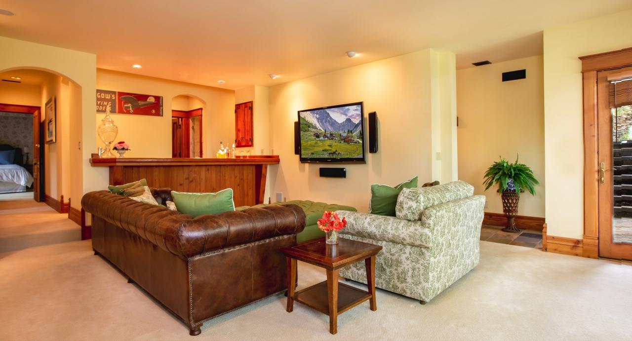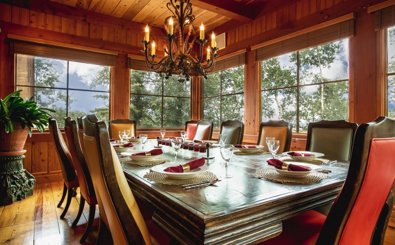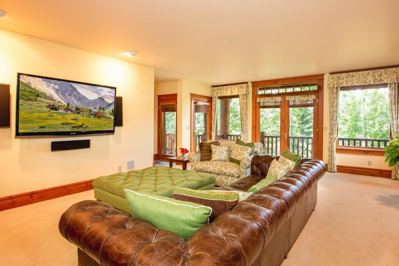 Positive Outlook is home to plush furnitur surrounding a warm gass fireplace with long hearths in the great room. Entertaining and meetings are easy in this room with the comfy furniture and cozy feel. Guests will also be able to take in the breathtaking views of Mountain Village from this room. The great room is equipped with a Sonos sound system and wet bar. Glass doors lead to the large stone patio with al fresco dining oportunities, a gas grill, and hot tub. Another access leads to the sunset balcony. Just off the impressive great room is a complete gouret kitchen with table seating for eight and adjacent formal dining with seating for twelve.