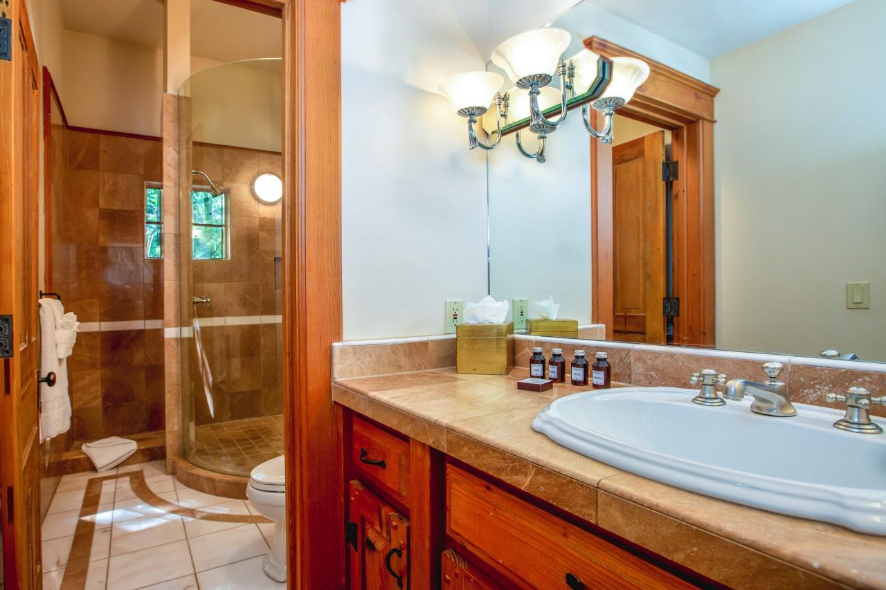 Located on the lower level are two additional guest rooms and a guest apartment. The twin guest suite features an en suite bathroom with full shower. Just down the hall, Guest 4 features a large desk, leather armchair and access to the lower deck system. Both of these guest rooms have easy access to the lower level den and full bar.