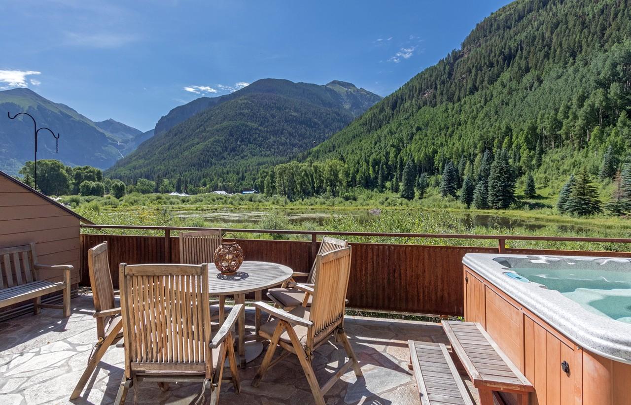 Rivercrown 5 sits directly on the San Miguel River bordering the Beaver Pond with unobstructed views of the mountains, Beaver Creek and Town Park while less than 300 yards from ski runs and the Gondola in the winter and next to some of the best hiking trails in the summer. There are no better views in all of Telluride!