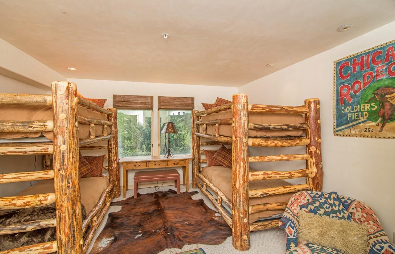 The huge master bedroom is on the third level with king and twin with en suite bath and private deck. On the main level you have the kitchen, dining and living room with stone fireplace, large flat screen TV, stereo and many more high-end amenities including large deck with hot tub. The ground level has two large bedrooms, one with a queen and en suite bath and the other is a bunk room with two sets of bunk beds (four twins) and its own bath.