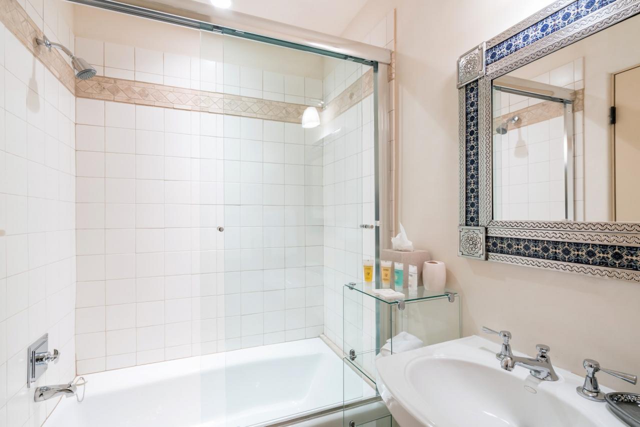 - Bedroom 2: King bed (can be converted to two twin beds), en suite bathroom with bathtub and shower, TV