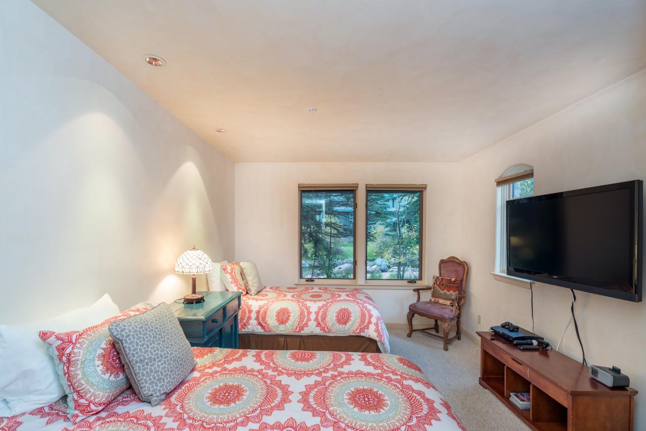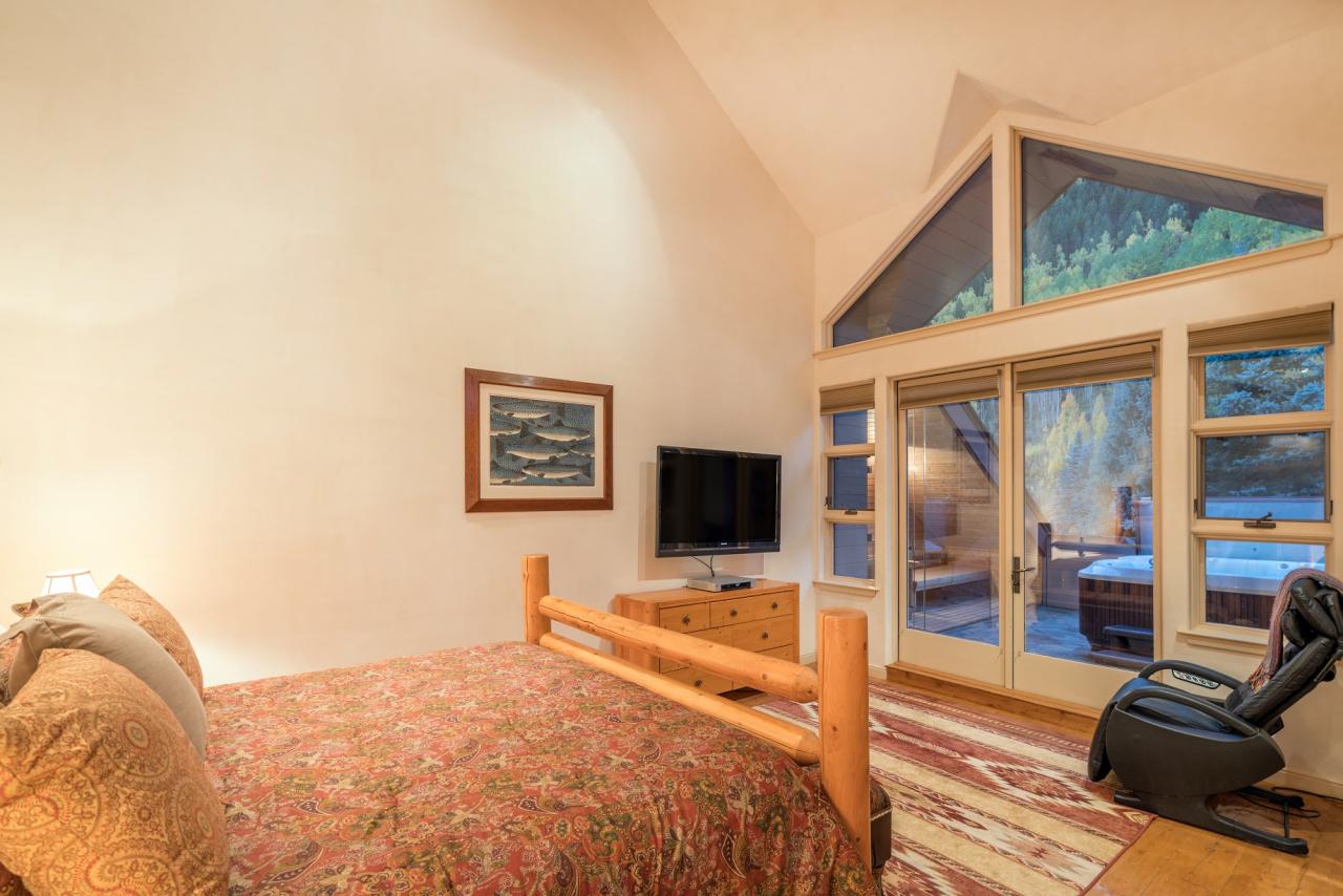 The huge master bedroom is on the third level with its own bath, Jacuzzi tub, flat screen TV and private deck. The master bedroom and deck overlook the Beaver Pond and the breathtaking views of the end of the box canyon.