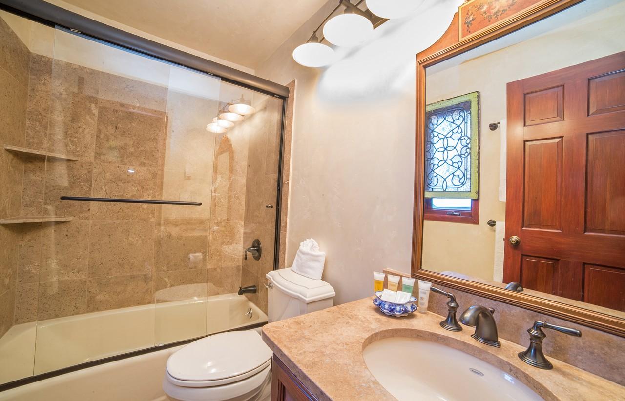 - Bedroom 2: King bed (can be converted to two twin beds), en suite bathroom with shower and bathtub, TV