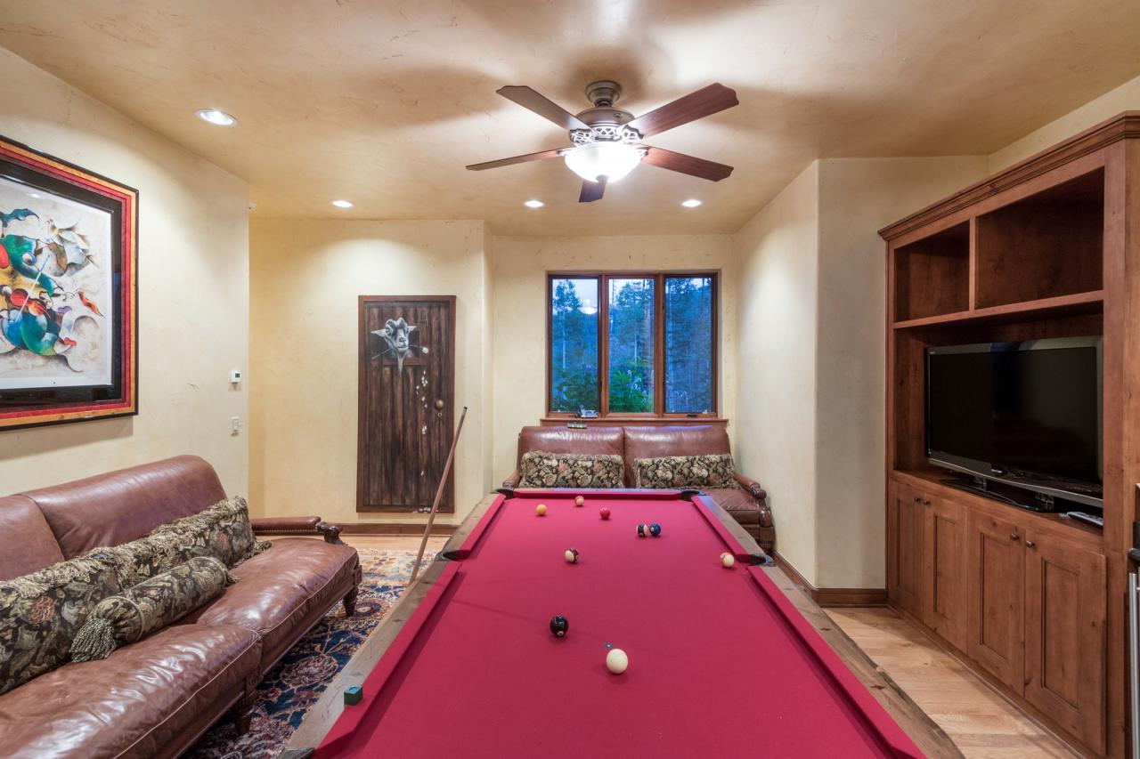 All guests at Stonegate Chalet will appreciate the game room located on the lower level of this luxury home. Comfortable leather seating with full size pool table is the perfect backdrop to watch a game on the large flat screen television. A wet bar and mini fridge are also present to keep your cravings at bay. Also located ont he lower level is a large mud room with plenty of storage space for large coats, boots, helmets and other ski equipment.